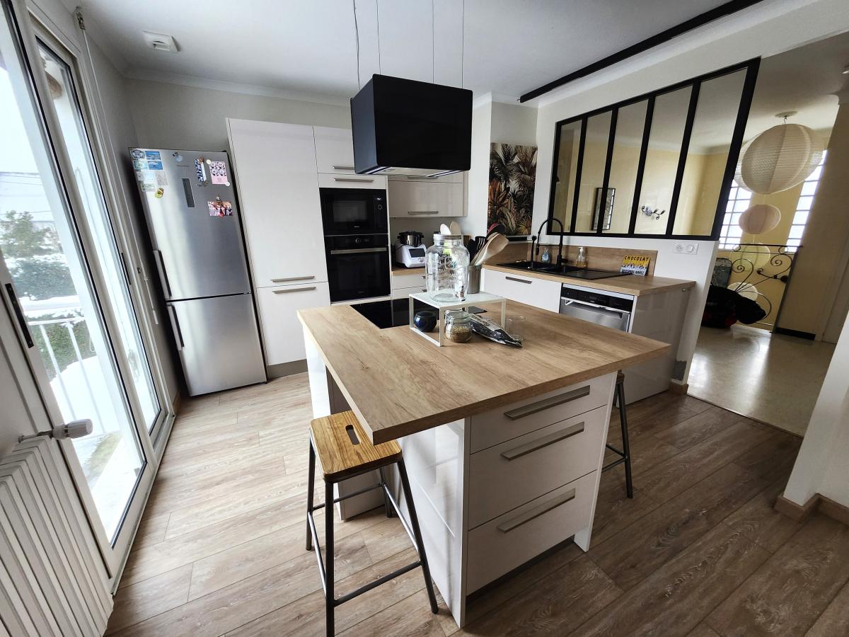 - Une cuisine ouverte toute aménagée et équipée, avec ilot central, et un second balcon avec accès au jardin