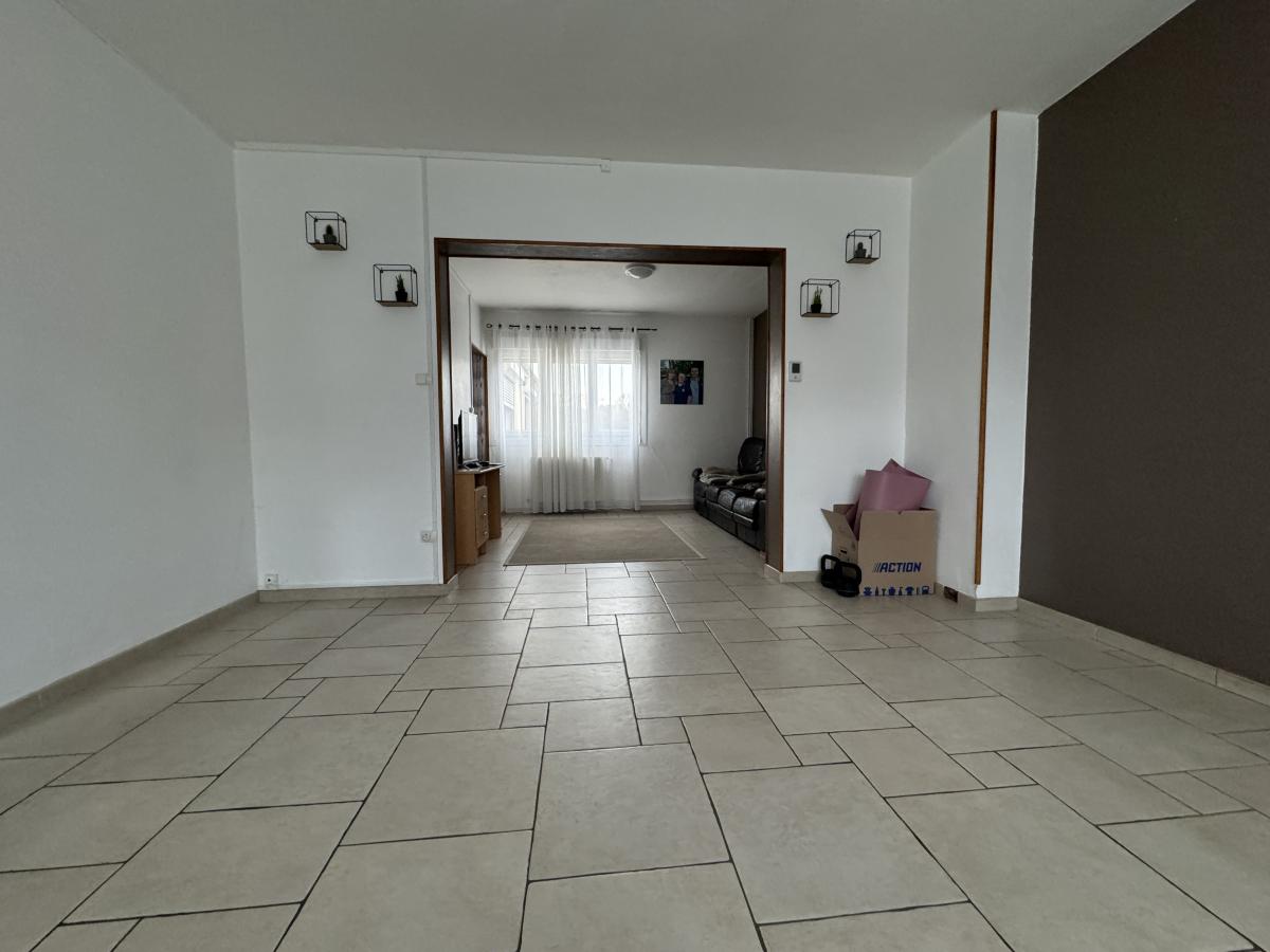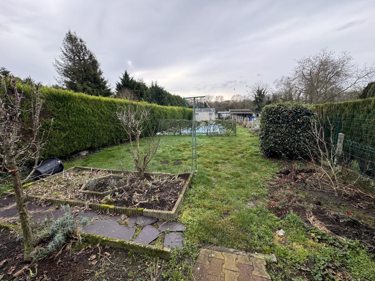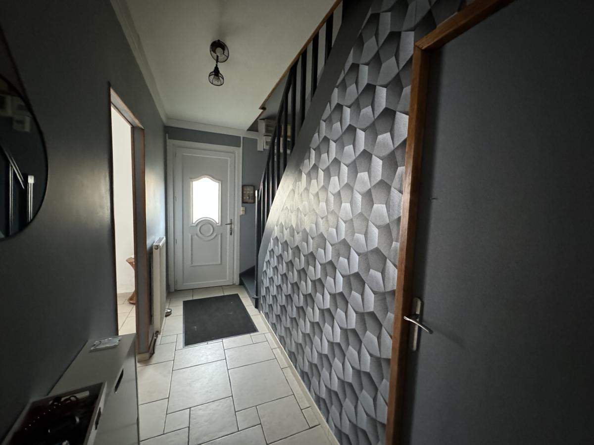 Maison semi individuelle à Quiévrechain au calme dans une impasse avec jardinet et parking devant + passage sur le côté. Cour macadam, 2 chalets de rangement et un grand jardin clos.