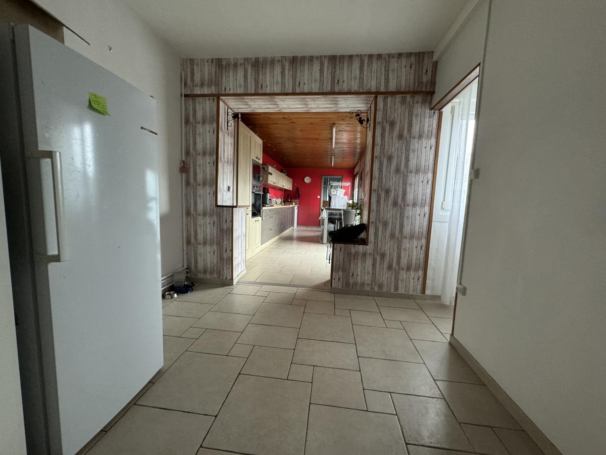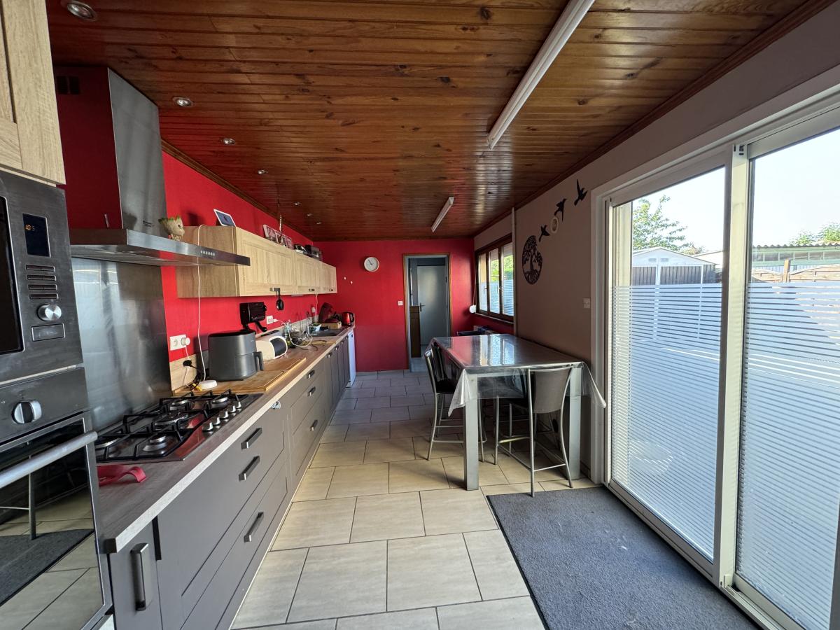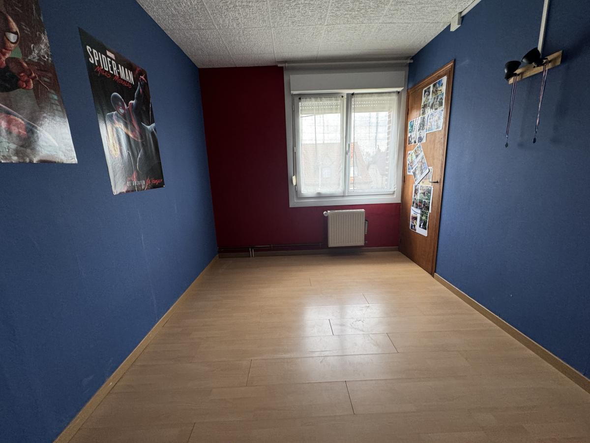 Maison semi individuelle à Quiévrechain au calme dans une impasse avec jardinet et parking devant + passage sur le côté. Cour macadam, 2 chalets de rangement et un grand jardin clos.