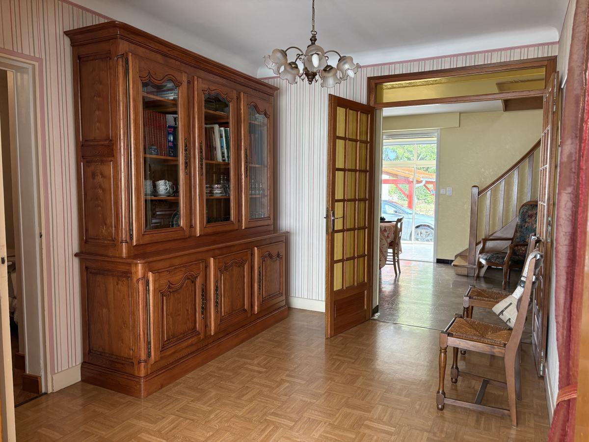 Au rez-de-chaussée : Salon - Bureau - Salle à manger - Cuisine aménagée et équipée (plaque gaz, Lave-vaisselle, Hotte, Four et Réfrigérateur) - Chambre - Dégagement avec placard - W.C. avec lave-mains - Salle d'eau avec placard - Deux chambres -