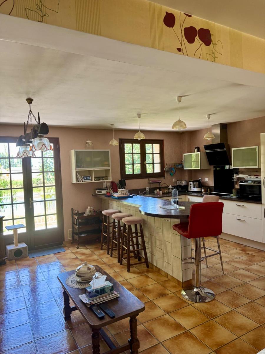 Une Maison d'habitation comprenant :  - Au rez-de-chaussée : une entrée, une salle à manger, un salon, une cuisine ouverte, une terrasse, deux chambres, une salle de bains avec baignoire et douche, un wc. - Au rez-de-jardin : un grand garage, une cave, une cuisine d'été donnant sur une terrasse ombragée, deux chambres, une salle de douche. Cette maison possède un grand terrain arboré de 7500 m² avec un étang. Les informations sur les risques auxquels ce bien est exposé sont disponibles sur le site Géorisques : www.georisques.gouv.fr