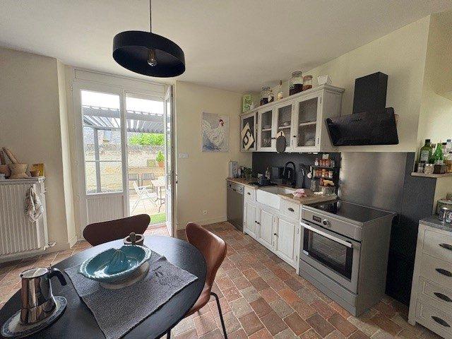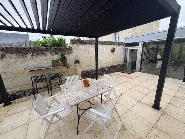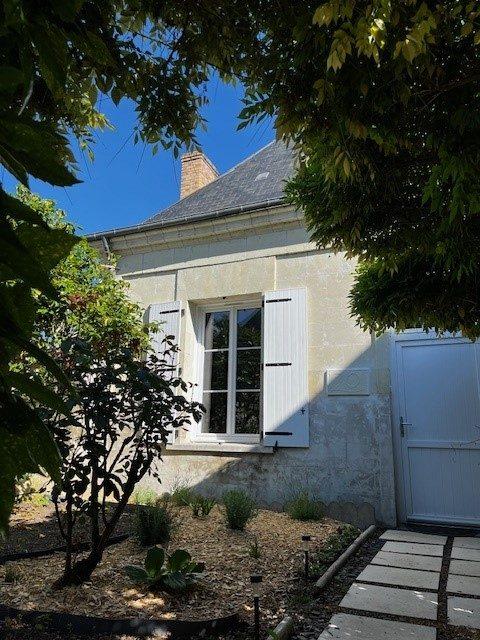 CHOUZE SUR LOIREMaison de Charme en tuffeau Une maison composée :En RDC : Entrée, chambre avec salle de douche, cuisine aménagée et équipée, salon séjour, petit salon, WC, terrasse.Au premier étage : un bureau ou chambre, deux chambres, une salle de bains, WC.Au sous sol : surface aménageable, cave.Atelier et caves voutées.Dans la cour : préau garagePetite bande de terrain entre la maison et le jardin.Jardin avec puits.