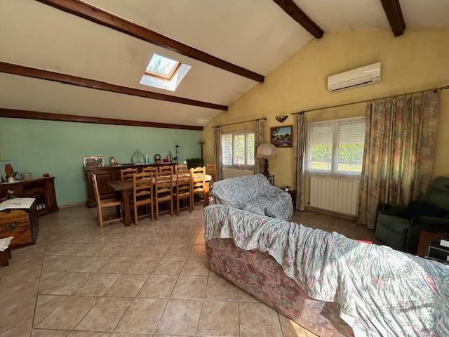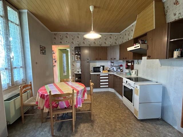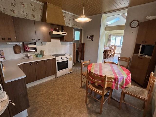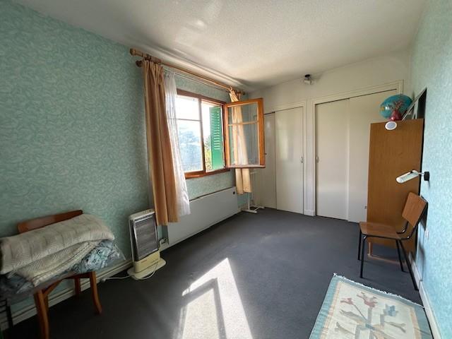 - Hall d'entrée, une pièce avec placard pouvant servir de chambre ou de bureau, cuisine avec cellier, salon/salle à manger, salle d'eau et WC.
