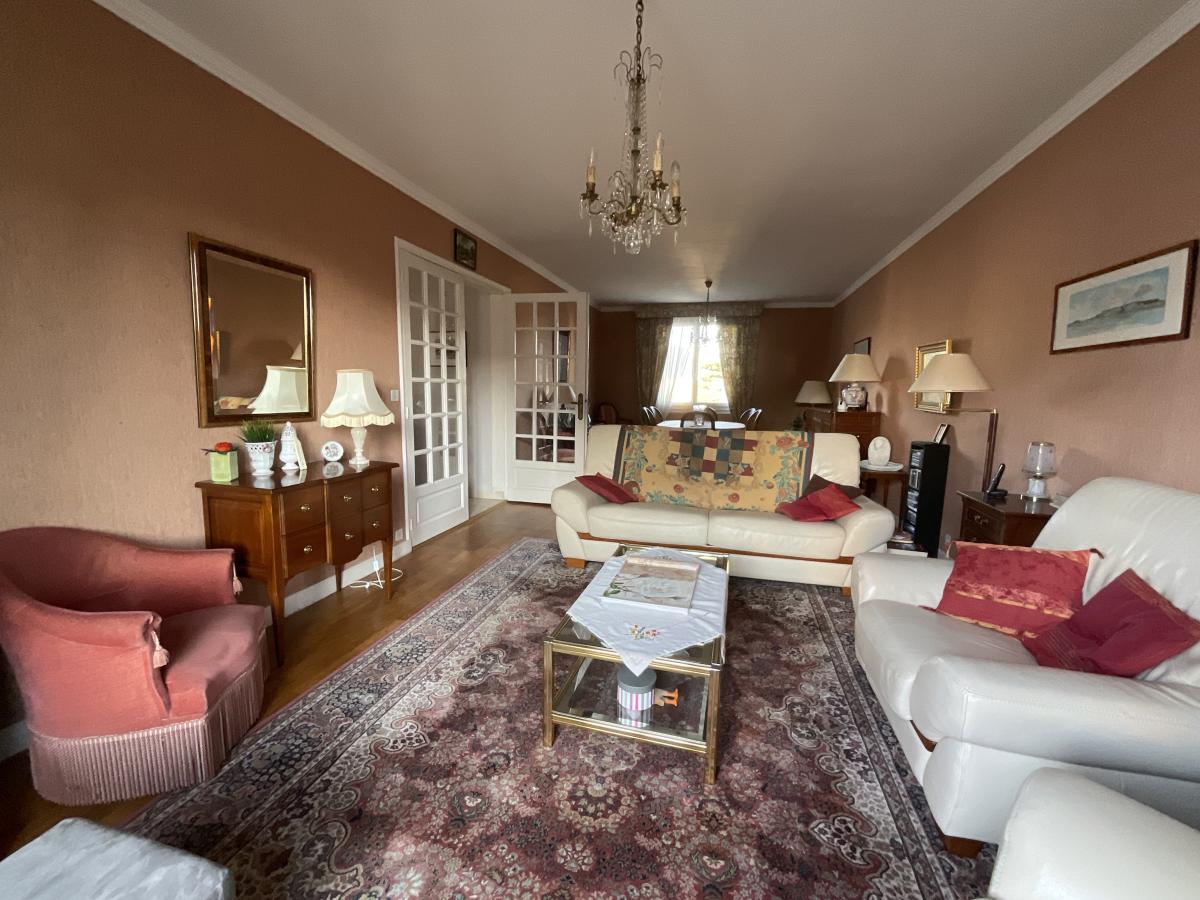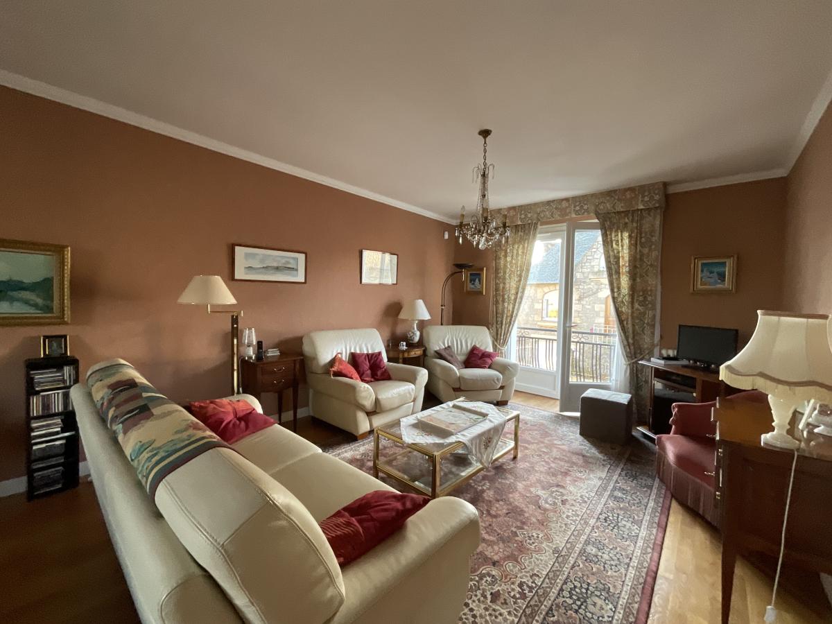 A VENDRE DINAN CENTRE, une maison année 1966, située au calme, la vie se fera au première étage avec une belle pièce à vivre, deux chambres, salle de bains, cuisine équipée.