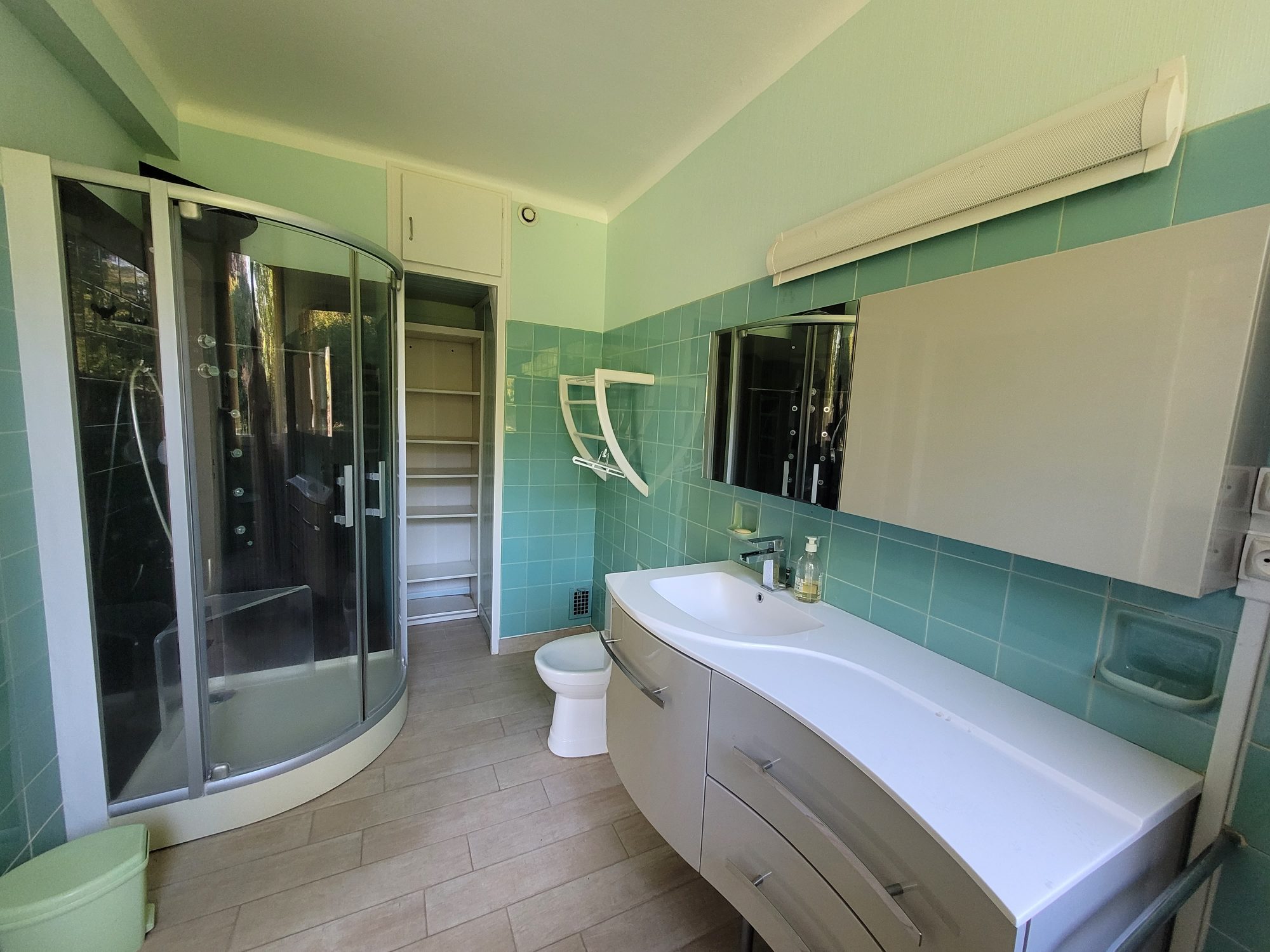 Au rez-de-chaussée : une entrée avec placard, réception, dégagement, chaufferie, wc, cuisine aménagée, chambre avec salle d'eau, salon et salle à manger avec cheminée ouverte.