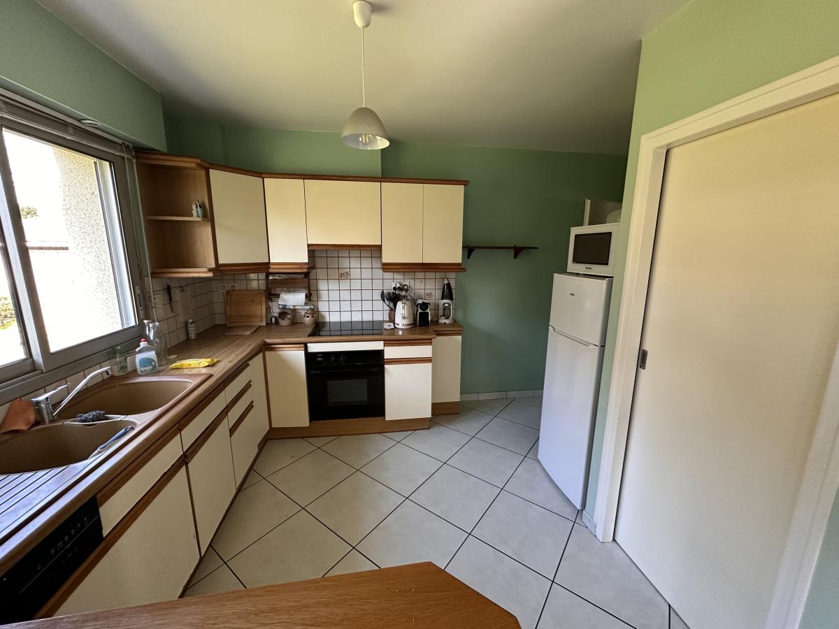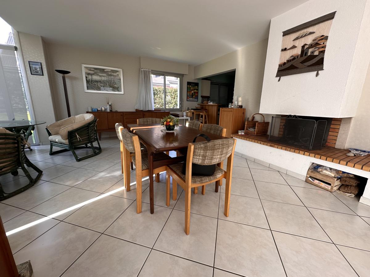 rdc : entrée avec placard, débarras, séjour-salon avec cheminée, cuisine ouverte équipée, cellier, 1 chambre avec placard, salle d'eau, WC avec lave-mains, garage télécommandé, terrasse avec store banne électrique,