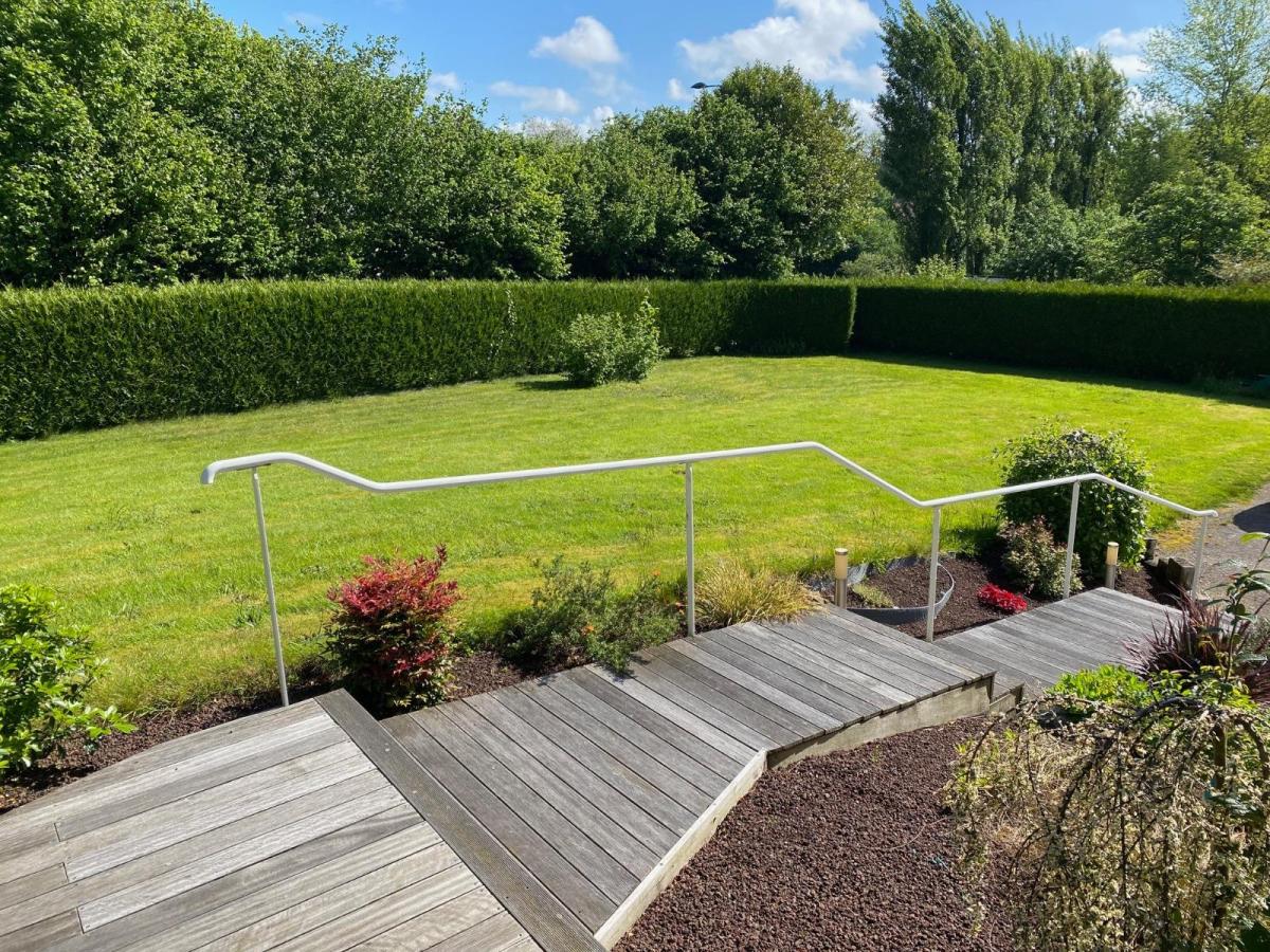 Proche échangeur de l'A84 et A 800 m à pied sur trottoir du centre-ville de VILLEDIEU, piste cyclable au pied de la maison,