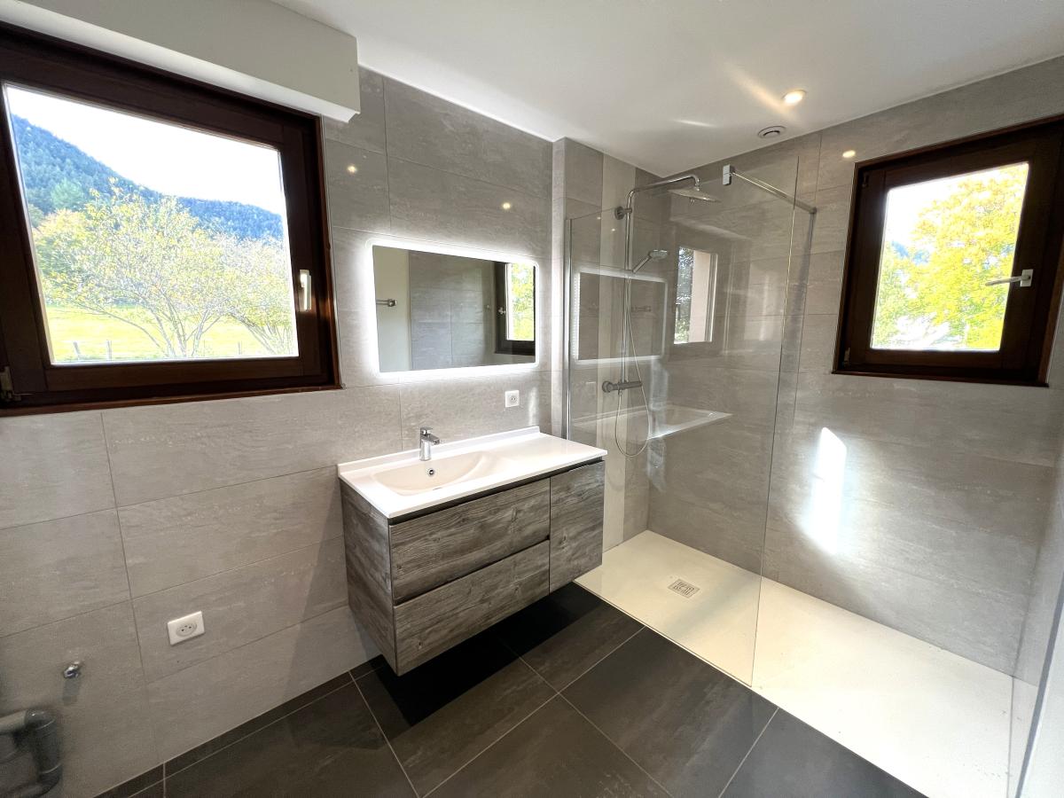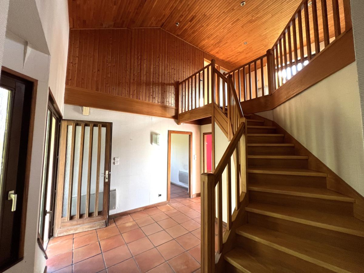 A l'étage : mezzanine - grande terrasse - salle de bains - 3 chambres.