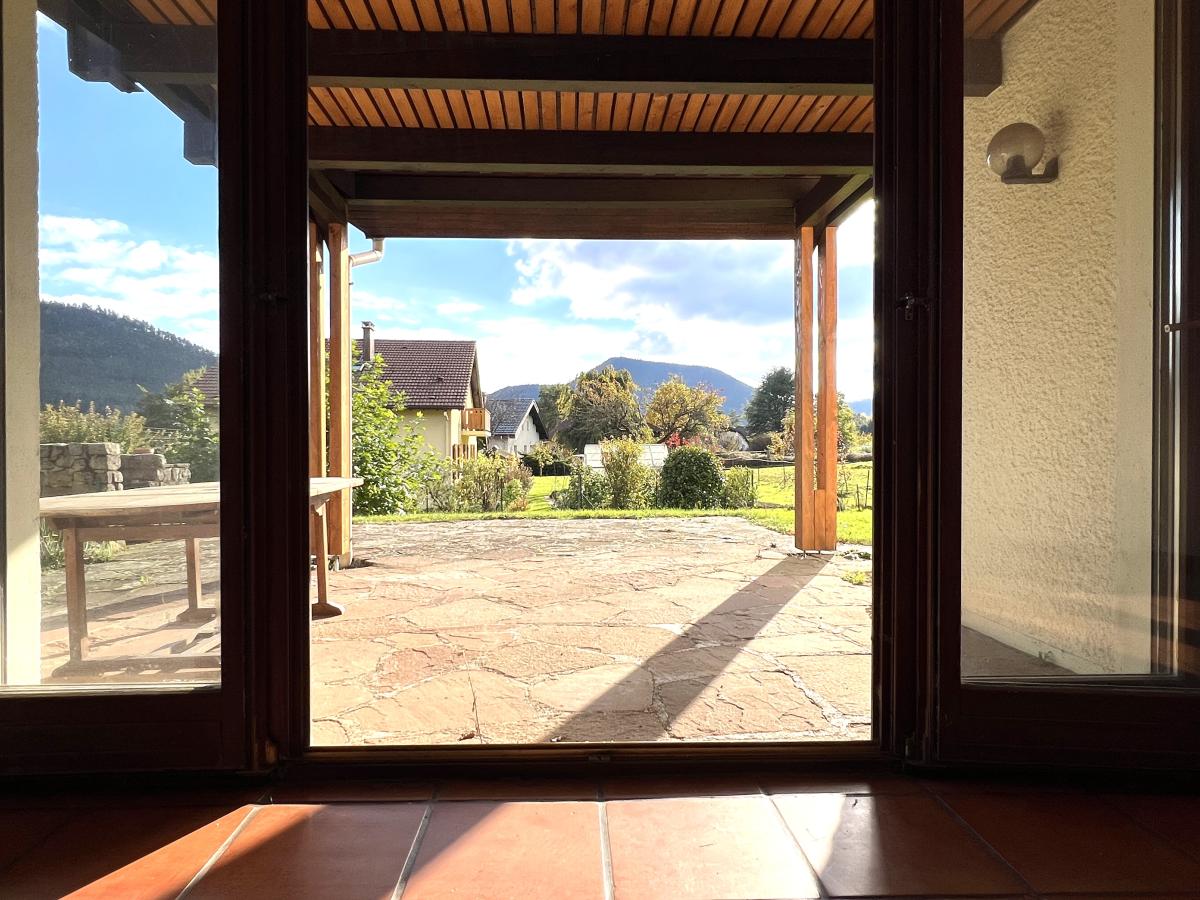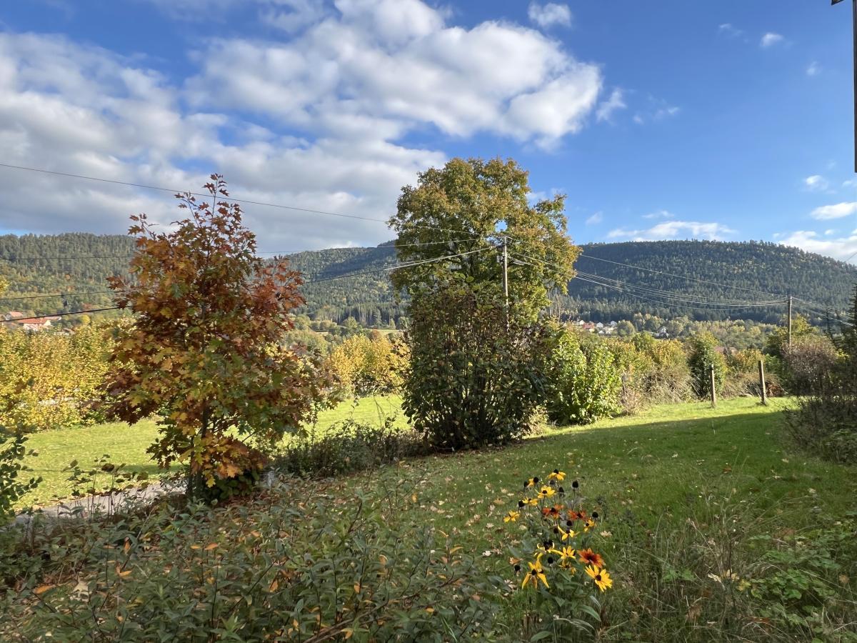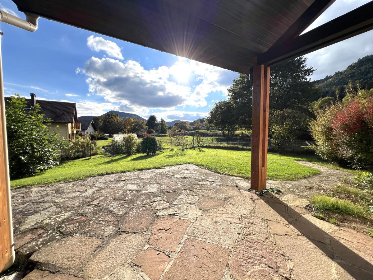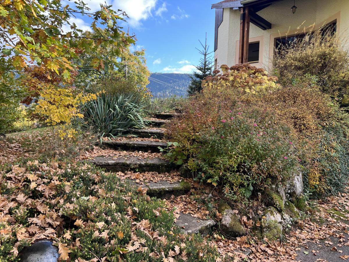 Terrain paysager de 2700m2 - grande terrasse abritée avec vue - barbecue traditionnel - cabane - arbres fruitiers et d'ornement.