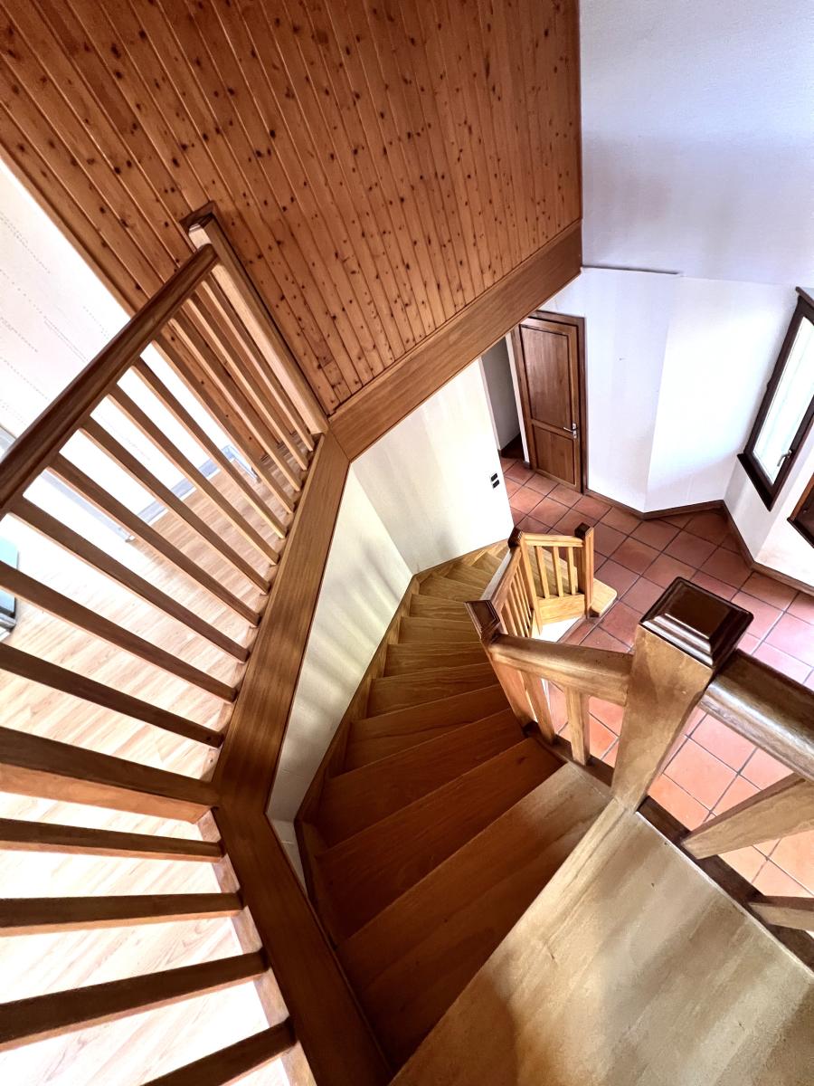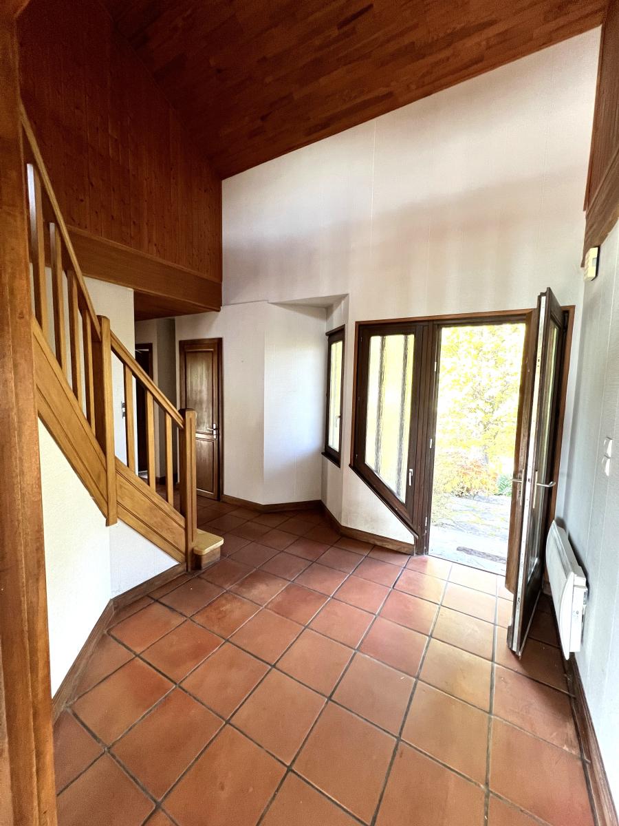 De plain-pied : hall d'entrée ouvert sur escalier et mezzanine - cuisine équipée en orme massif - séjour/salle à manger lumineux ouvert sur terrasse - coin feu - salle d'eau pourvue d'une douche à l'italienne récente - wc - chambre.