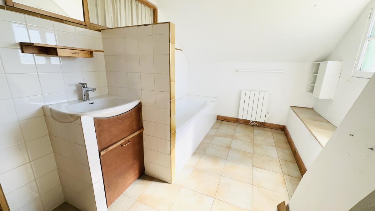 Le premier étage propose une pièce palière spacieuse de 50 m², un dégagement-buanderie de 26 m², deux chambres supplémentaires et une salle de bains avec WC, offrant une belle flexibilité d'usage.