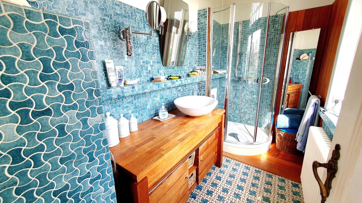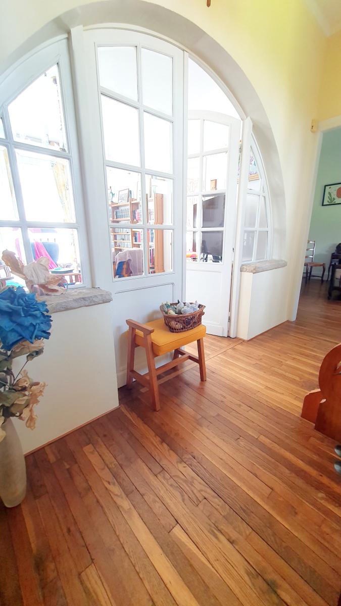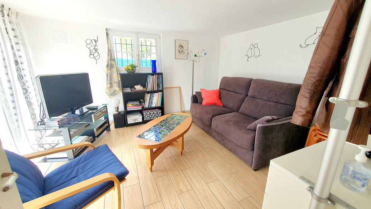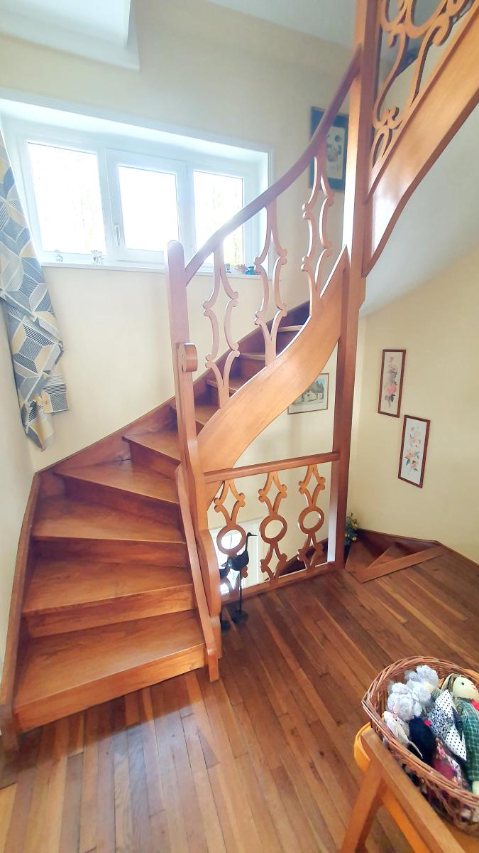 à l'étage: palier, séjour sur parquet, cuisine aménagée, 2 chambres, salle d'eau et wc,