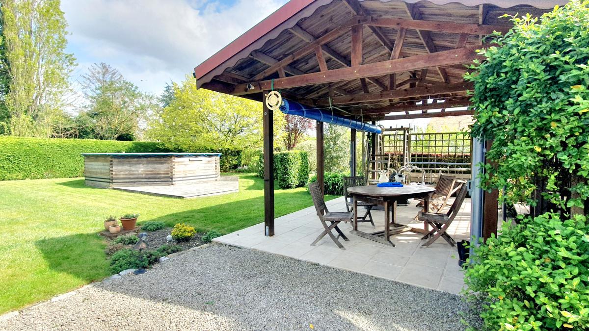1 piscine hors sol chauffée, par pompe à chaleur, pergola carrelée, jardin, le tout sur 1800 m2 de terrain.