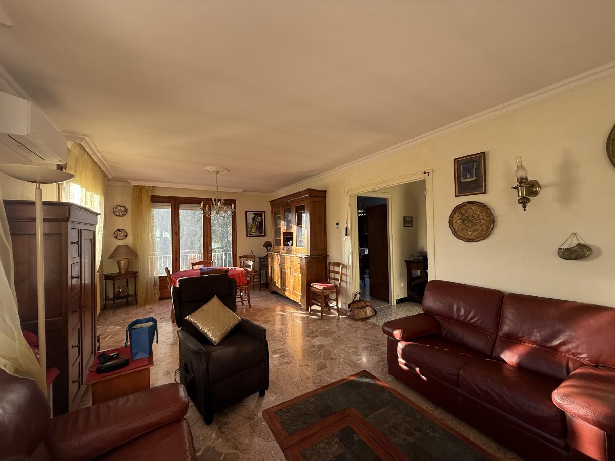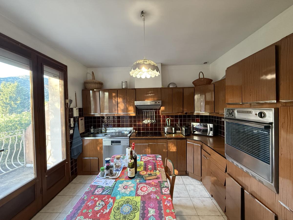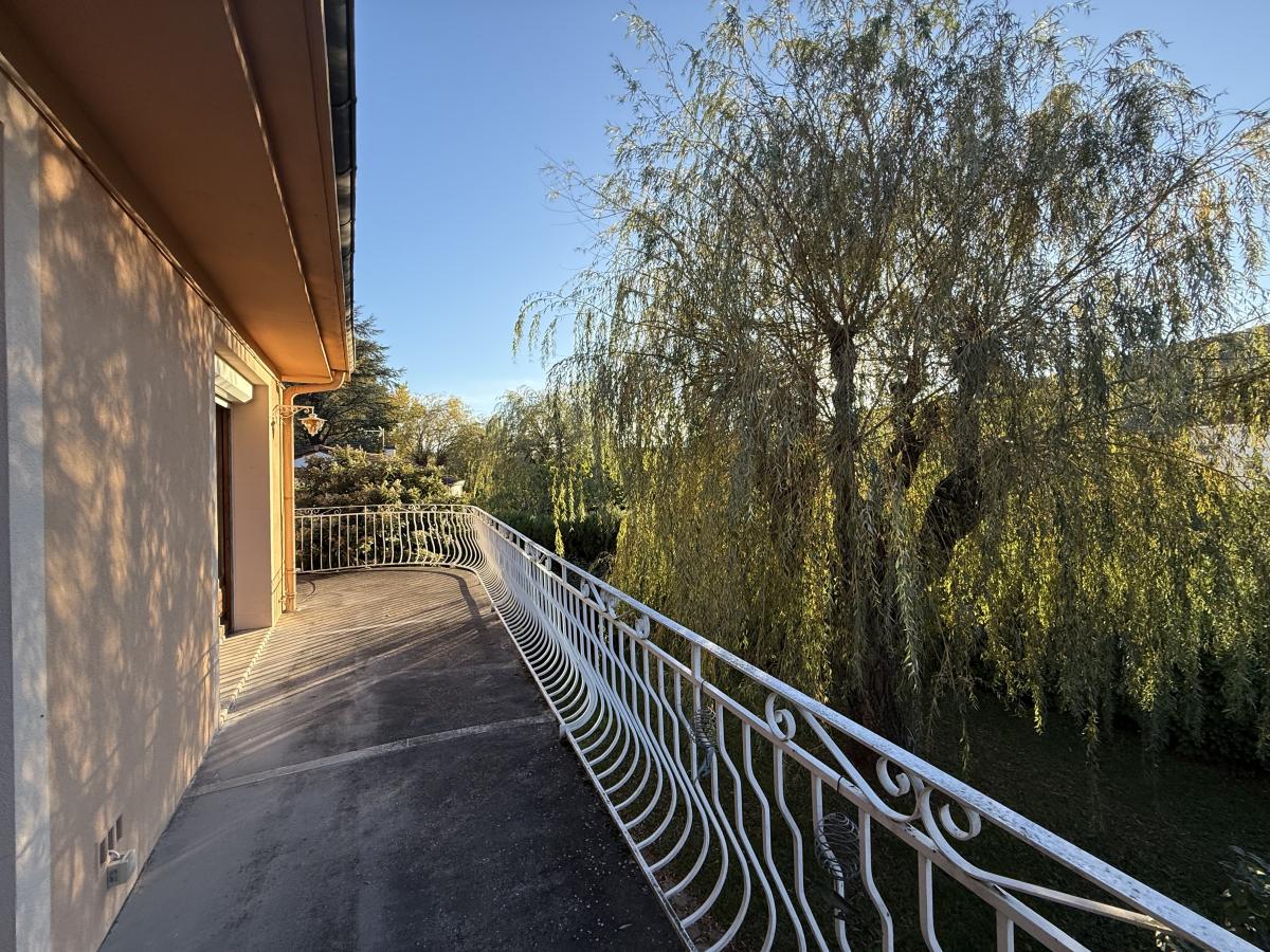 A l'étage on retrouve un salon-séjour climatisé exposé Sud-Ouest et une cuisine indépendante donnant accès directement au balcon.