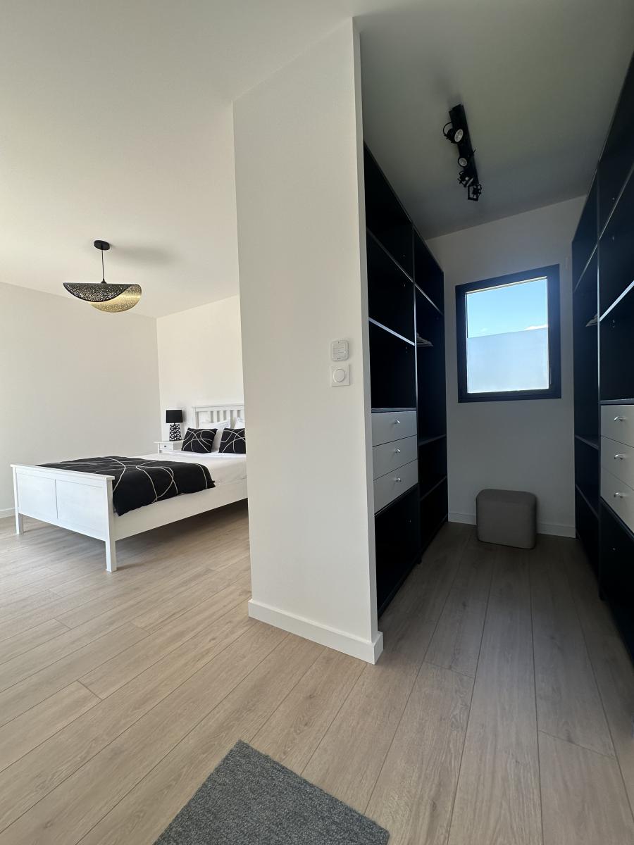L’espace nuit du rez-de-chaussée propose une suite parentale élégante, comprenant une chambre spacieuse, un dressing, une salle d’eau privative.