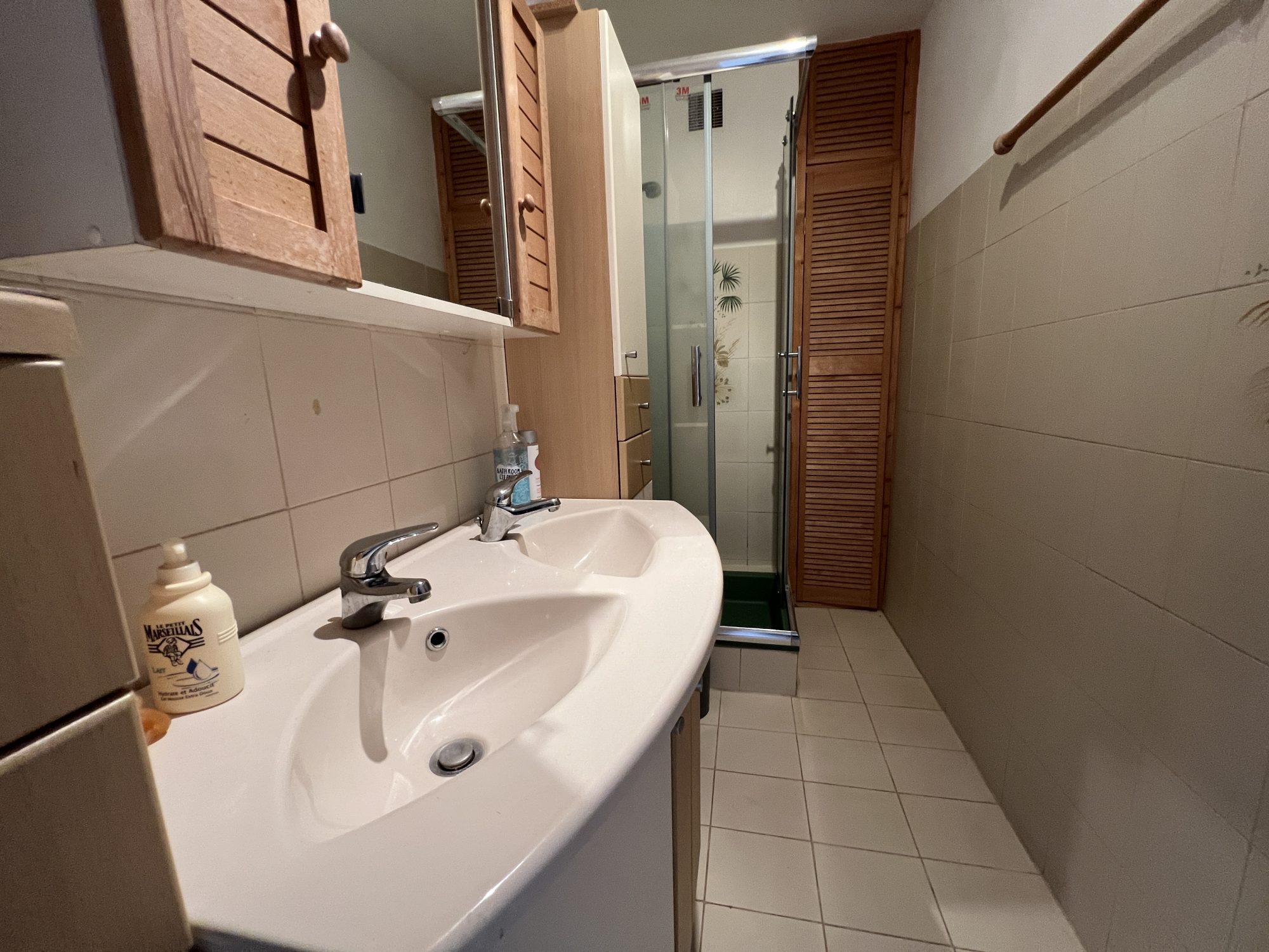 À l’étage, une mezzanine aménagée en palier-bureau dessert un dégagement, un WC, une salle d’eau, une chambre ainsi qu’un bureau.