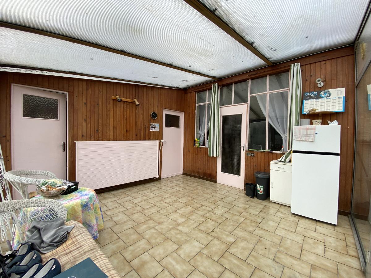 Au-rez-de-chaussée : entrée, séjour, salon, chambre, cuisine, véranda, salle de bains et WC