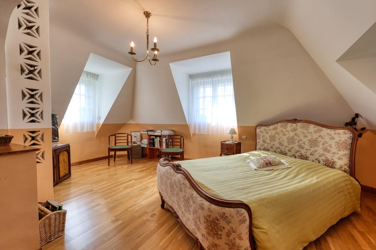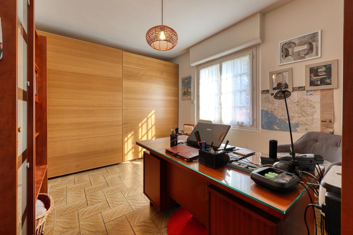 A l'étage un palier dessert 2 belles chambres dont une de plus de 25 m2 divisible avec un espace bureau, une salle de bains avec WC séparés.