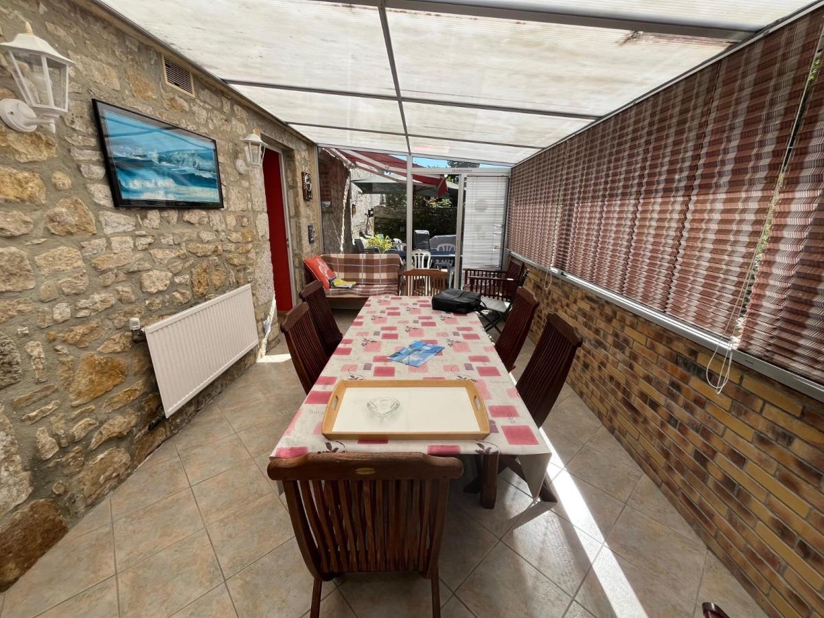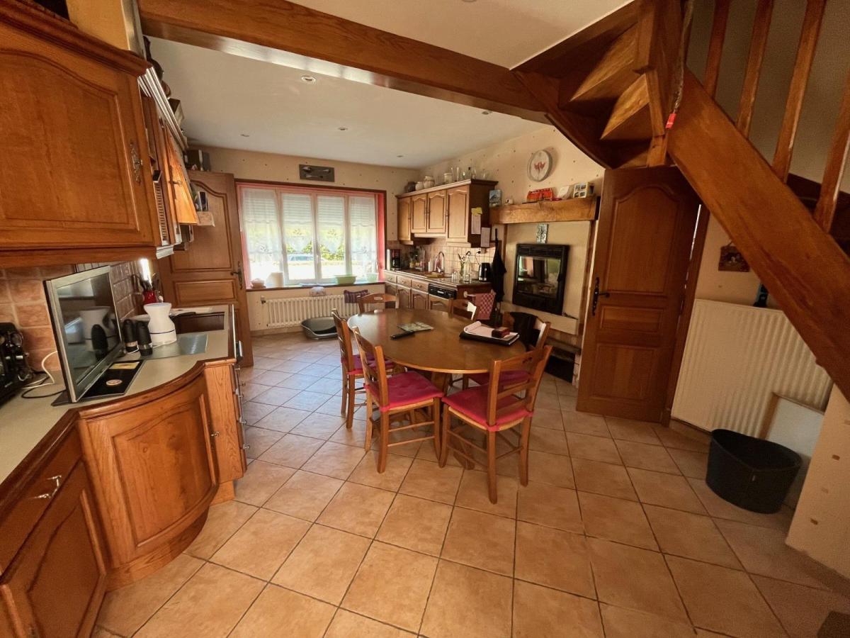 AMFREVILLE, maison d'habitation en pierres couverte en ardoises, en très bon état : Entrée, séjour 30 m², cuisine équipée avec insert (éléments hauts et bas, plaque de cuisson, hotte, four, réfrigérateur) 25 m², véranda 18 m², wc avec lave-mains,  A l'étage couloir desservant quatre chambres 10 m², 11 m², 12 m² et 12 m² dont deux avec placard, un bureau 9 m², deux salle de douches, deux wc,  Grenier sur le dessus,  Attenant ; une pièce à usage de chaufferie / buanderie 20 m² Grange à la suite 50 m², avec grenier Garage ouvert 25 m²,  Atelier 20 m²,  Abri pour camping car Ancienne écurie 30 m²,  Cour en avant et jardin sur l'arrière, l'ensemble pour 2923 m² - Chauffage par aérothermie - Fenêtres PVC - Volets roulants Montant estimé des dépenses annuelles d'énergie pour un usage standard entre 1270 € et 1790 € : prix moyens des énergies indexés su les années 2021, 2022 et 2023 (abonnement compris) Les informations sur les risques auxquels ce bien est exposé sont disponibles sur le site Géorisques : www. georisques. gouv. fr