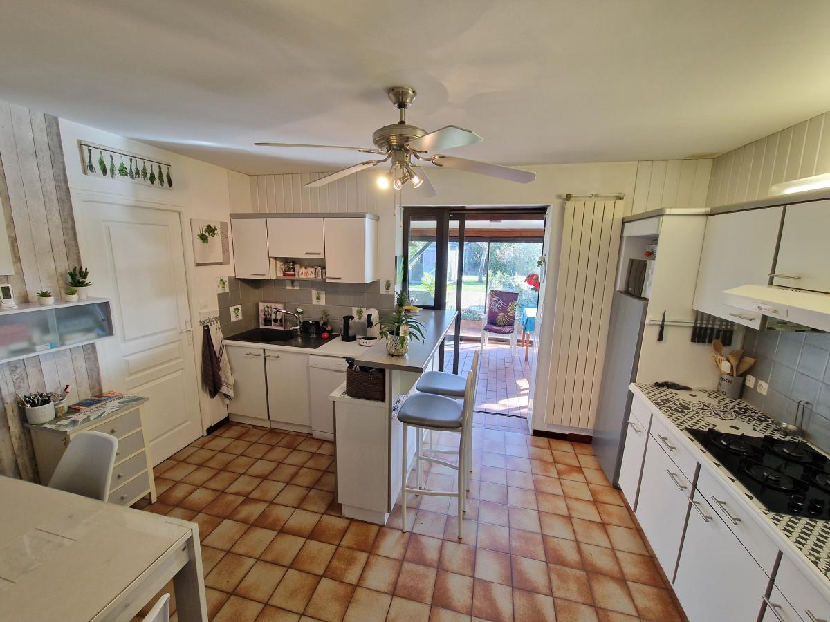 Deux vérandas, cuisine avec cellier ET buanderie, séjour-salon avec cheminée ouverte, cinq chambres, 2 salles de douche, WC.