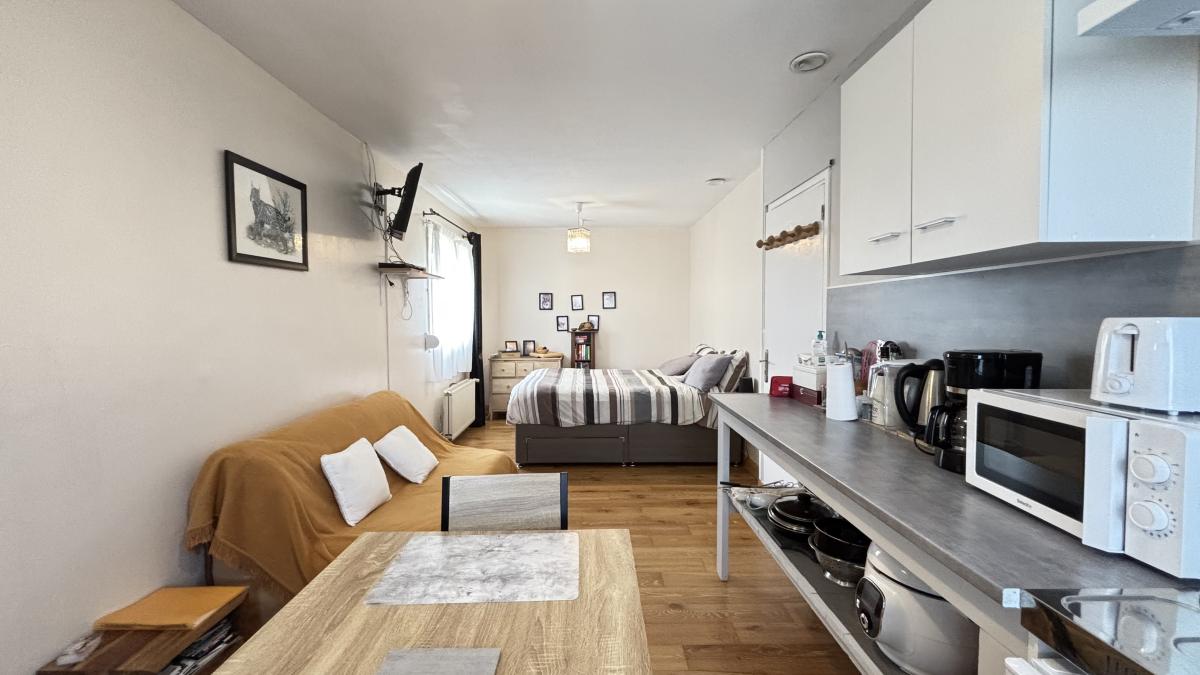 Un espace indépendant comprenant une chambre avec coin cuisine et salle de bains, actuellement exploité en Gîte.