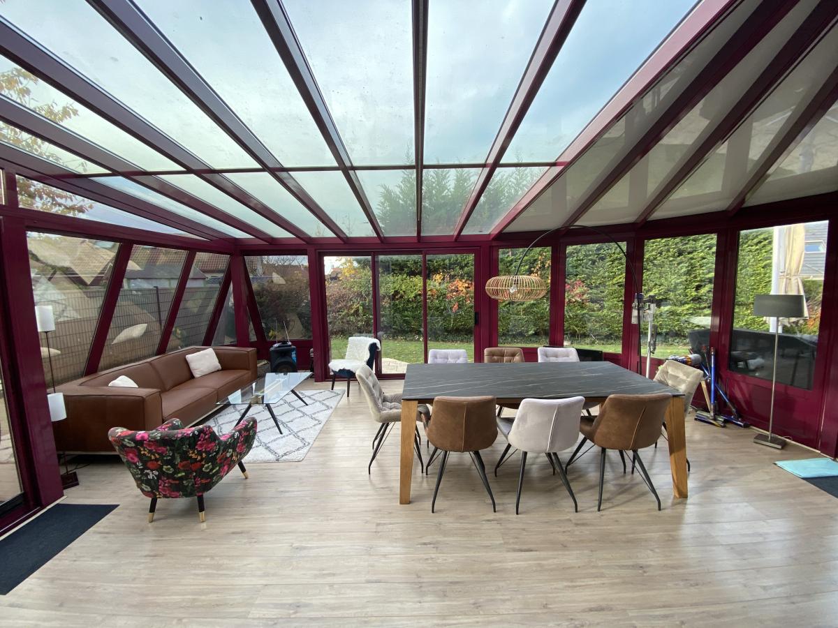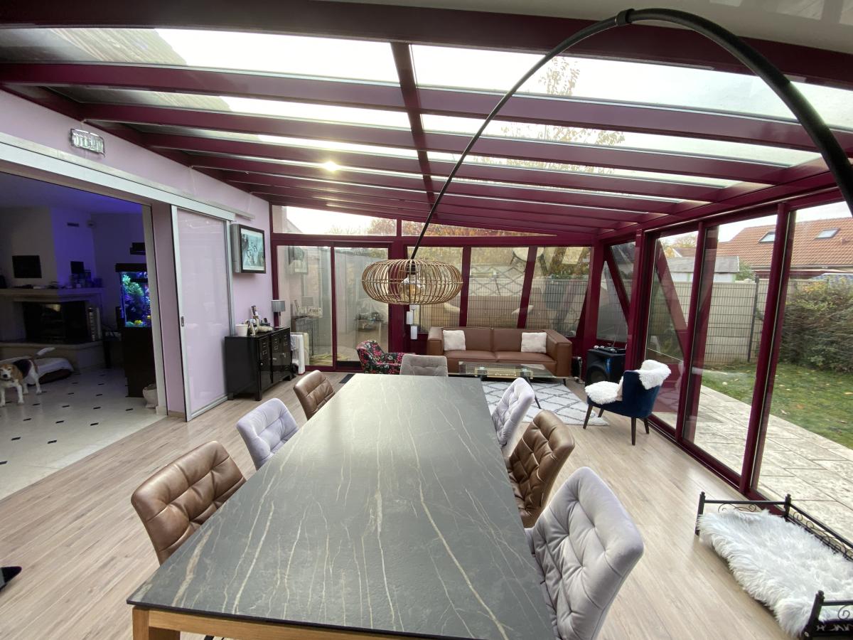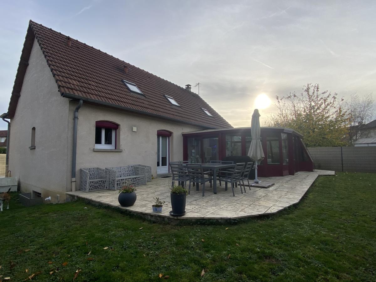 Marne (51) Pavillon indépendant avec très belles prestations, comprenant de plain pied, entrée avec dégagement, WC, salon séjour (sol en pierre) avec grande cuisine ouverte et véranda de 30 m² donnant sur terrasse et jardin. Espace parental avec salle de douche privative et WC. Au premier étage, palier desservant 3 chambres, un bureau, WC, salle de bains. Jardin clos et arboré sur plus de 600 m². Bel environnement calme.