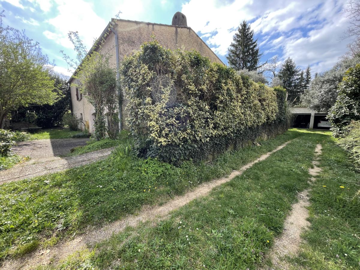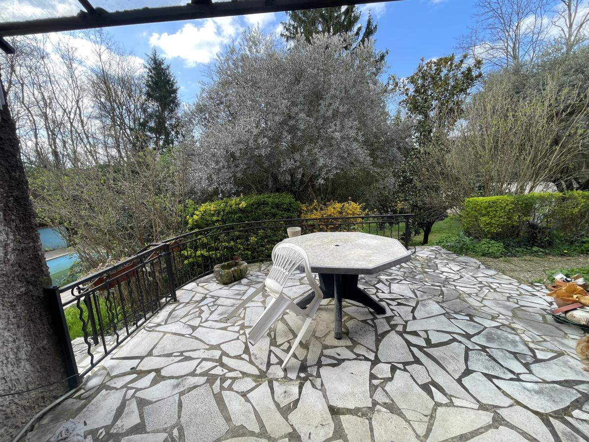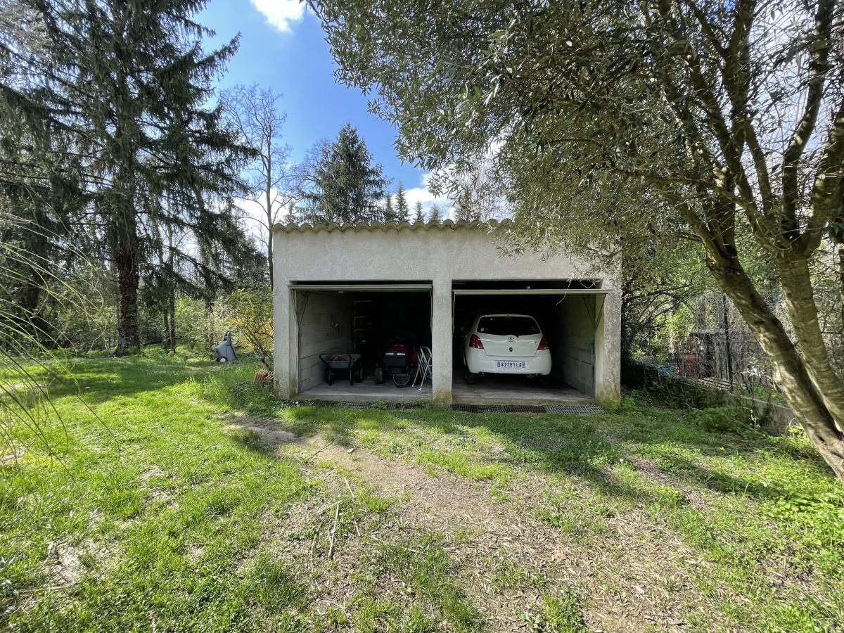 Avec double garage non attenant, une piscine, un forage et un grand terrain arboré.