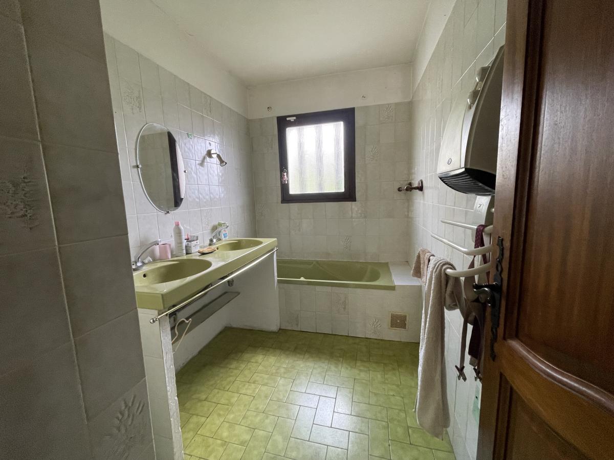 - à l'étage : salon/séjour d'environ 37m2, cuisine, quatre chambres dont une avec salle d'eau, wc, salle de bains, terrasse.