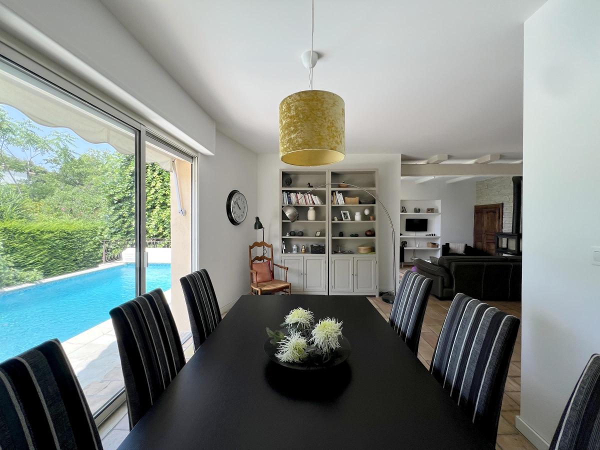 - d’une salle à manger ouvrant sur l’espace piscine,