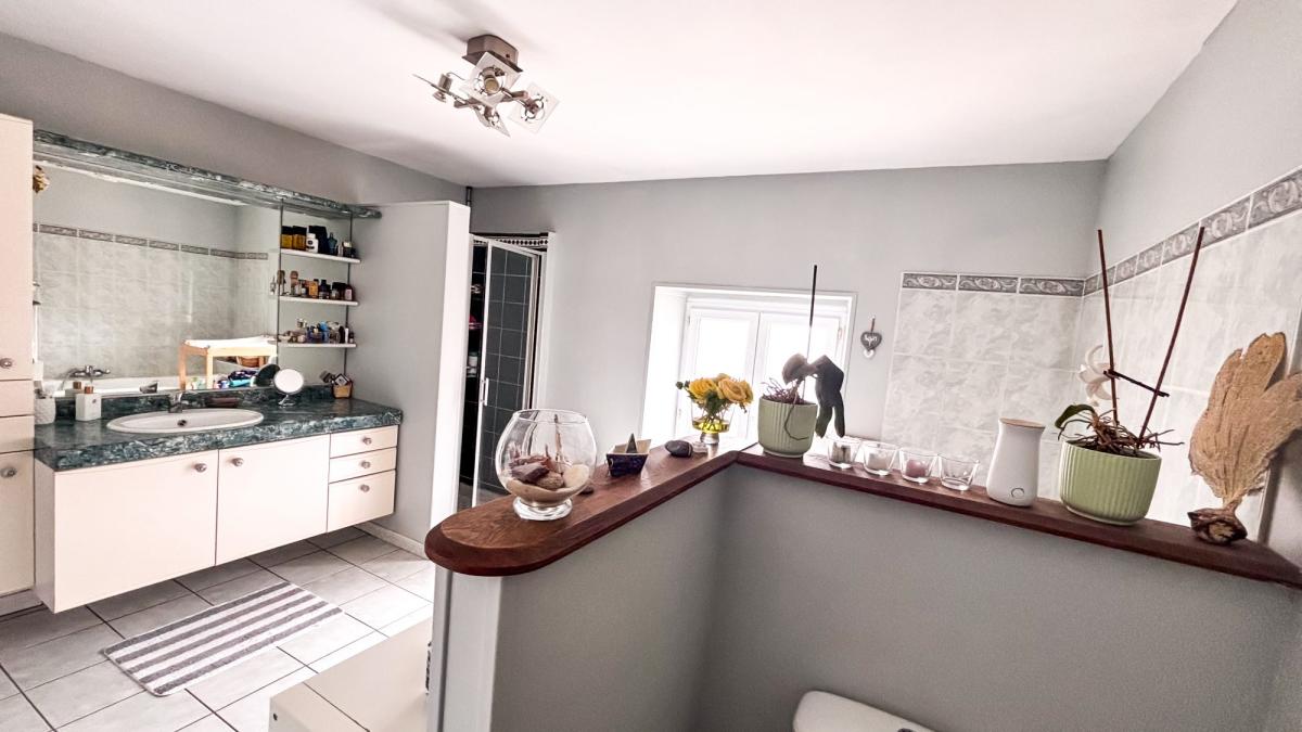 Son séjour est spacieux, la cuisine est grande et aménagée ne nécessitant aucun travaux, une douche au rez-de-chaussée et une salle de bains à l'étage. L'étage offre 5 chambres et un grenier aménageable.