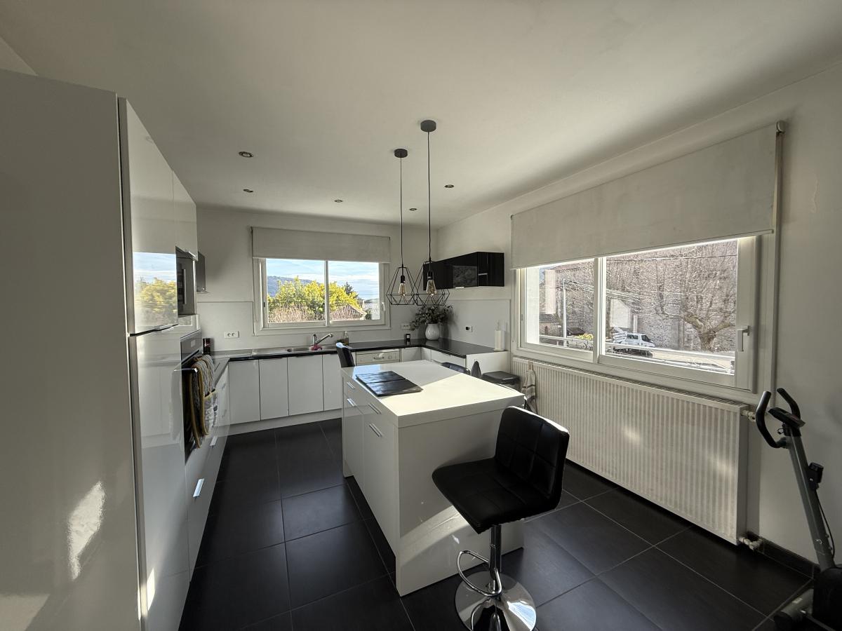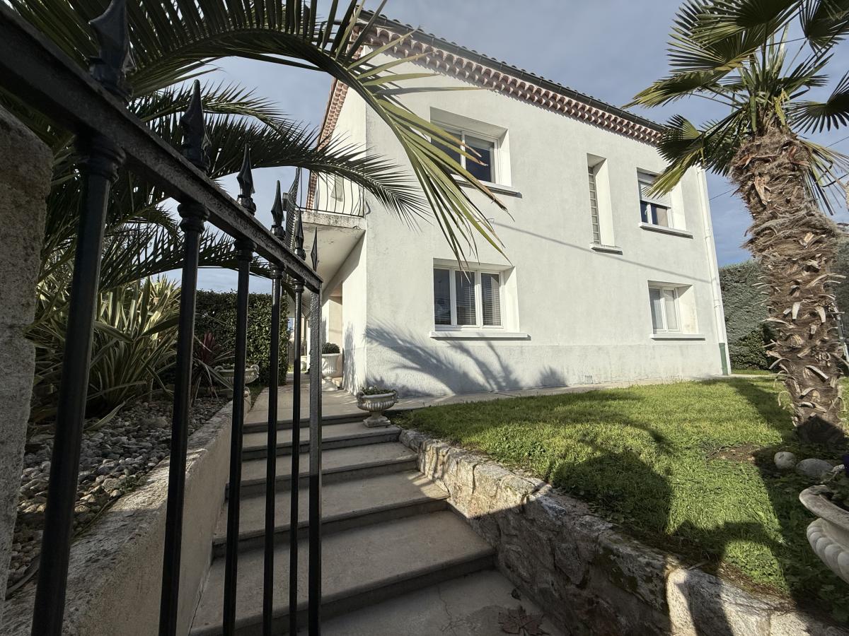 Dans quartier calme, proche centre village, maison individuelle d'environ 175m² habitables sur une parcelle close et arborée de 504m². Au rez-de-chaussée une vaste entrée qui dessert deux chambres avec chacune sa douche, un toilette séparé avec douche également, un bureau, une buanderie-chaufferie et un accès direct au garage. A l'étage vous profiterez d'une cuisine indépendante totalement aménagée et équipée, un séjour-salon climatisé exposé Sud avec accès sur la terrasse et vue sur le clocher du village. De plus, deux chambres, une salle de bains et un WC séparé complètent ce bien.