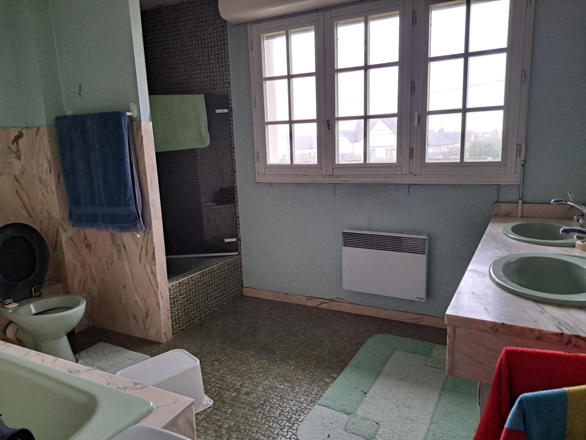 A l'étage : Pallier, trois belles chambres et une salle de bain avec baignoire et douche.