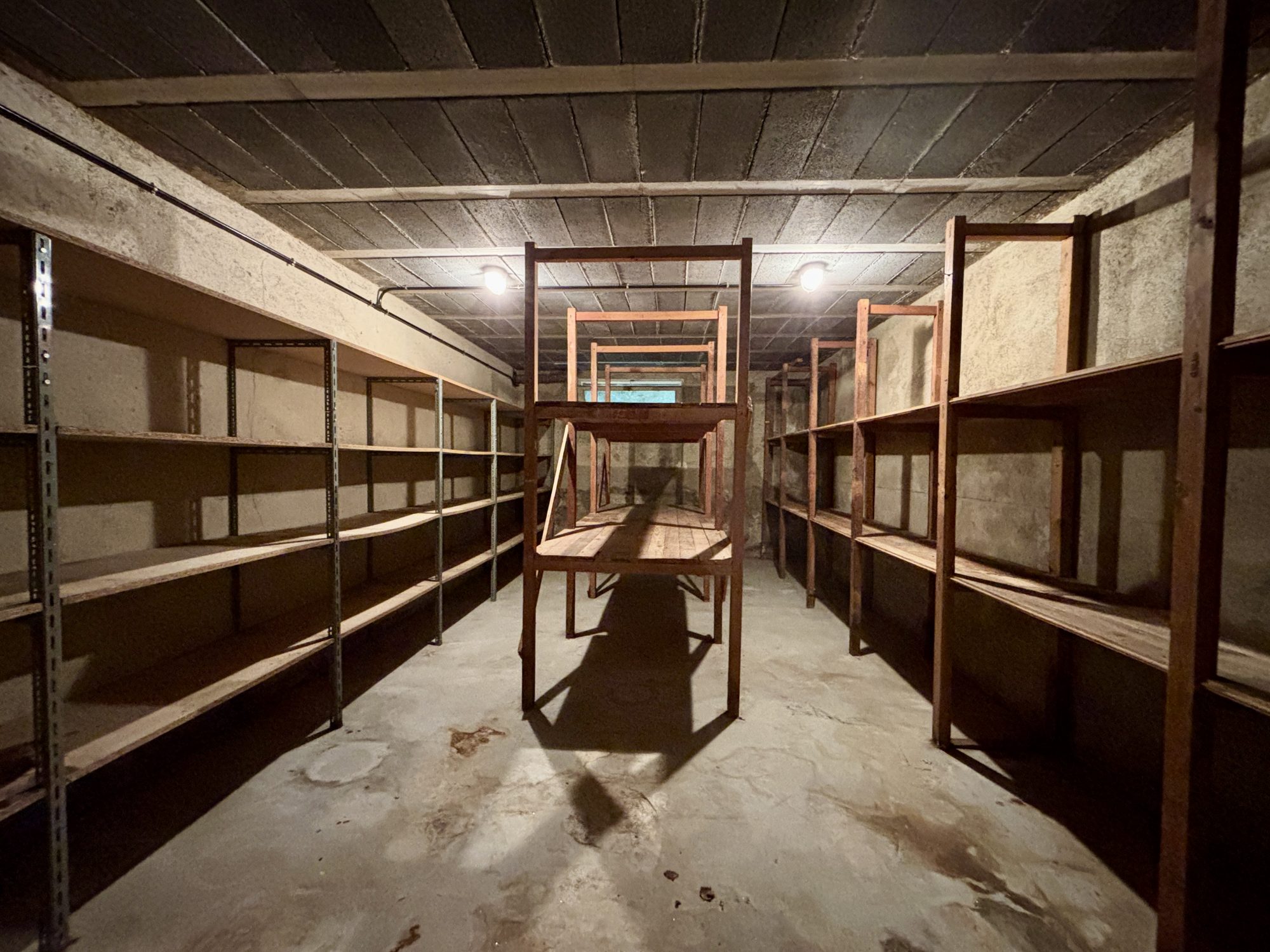 Le sous-sol, particulièrement spacieux, accueille un double garage équipé de portes sectionnelles motorisées, une chaufferie avec WC, deux caves, ainsi qu’une chambre bénéficiant de sa propre salle d’eau avec WC, idéal pour un espace indépendant ou un bureau.