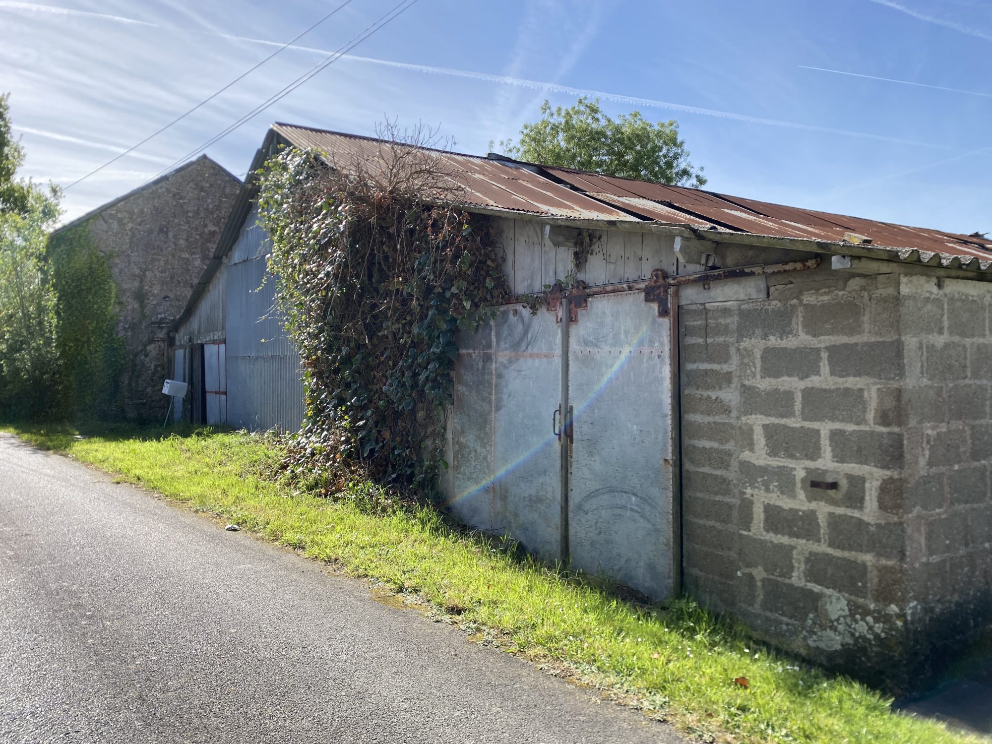 Dépendances en pierres et hangar en tôle d'environ 400m².
