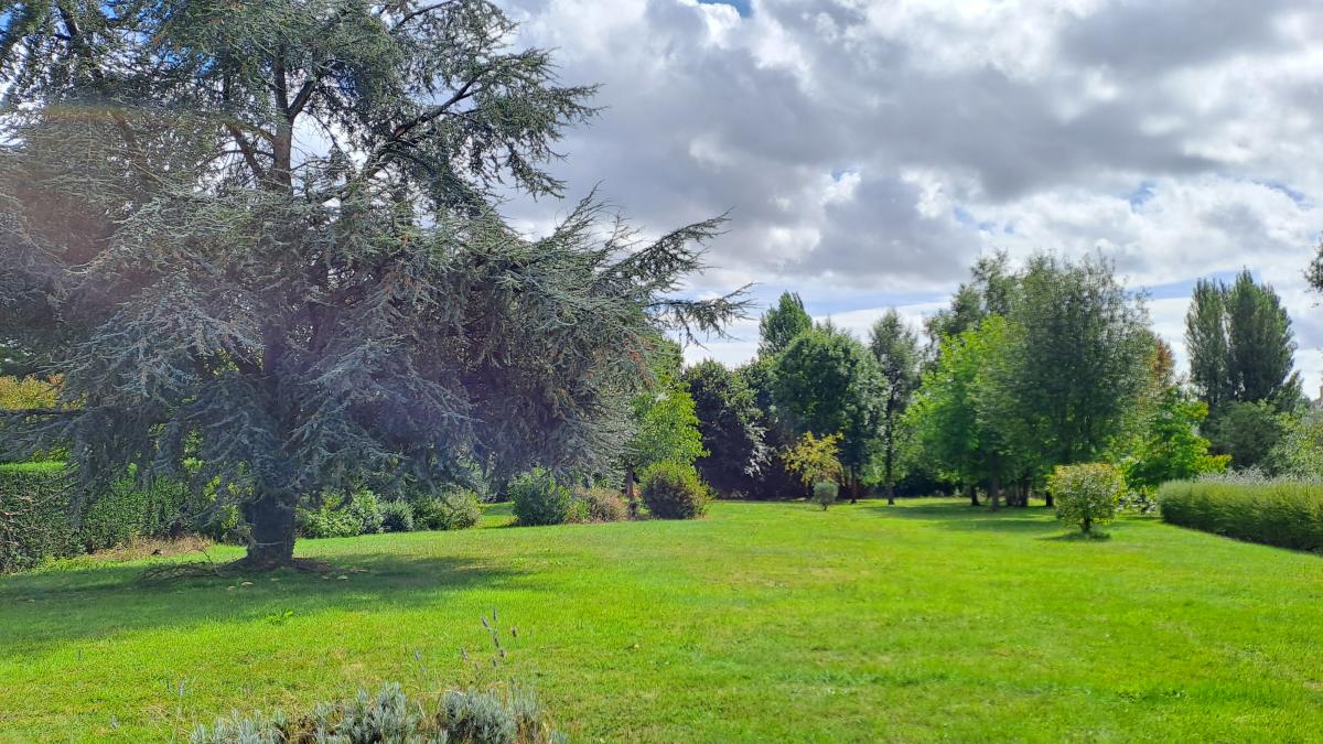 Jardin sur 3965 m2 clos et arboré comprenant un garage double et un grenier au-dessus.