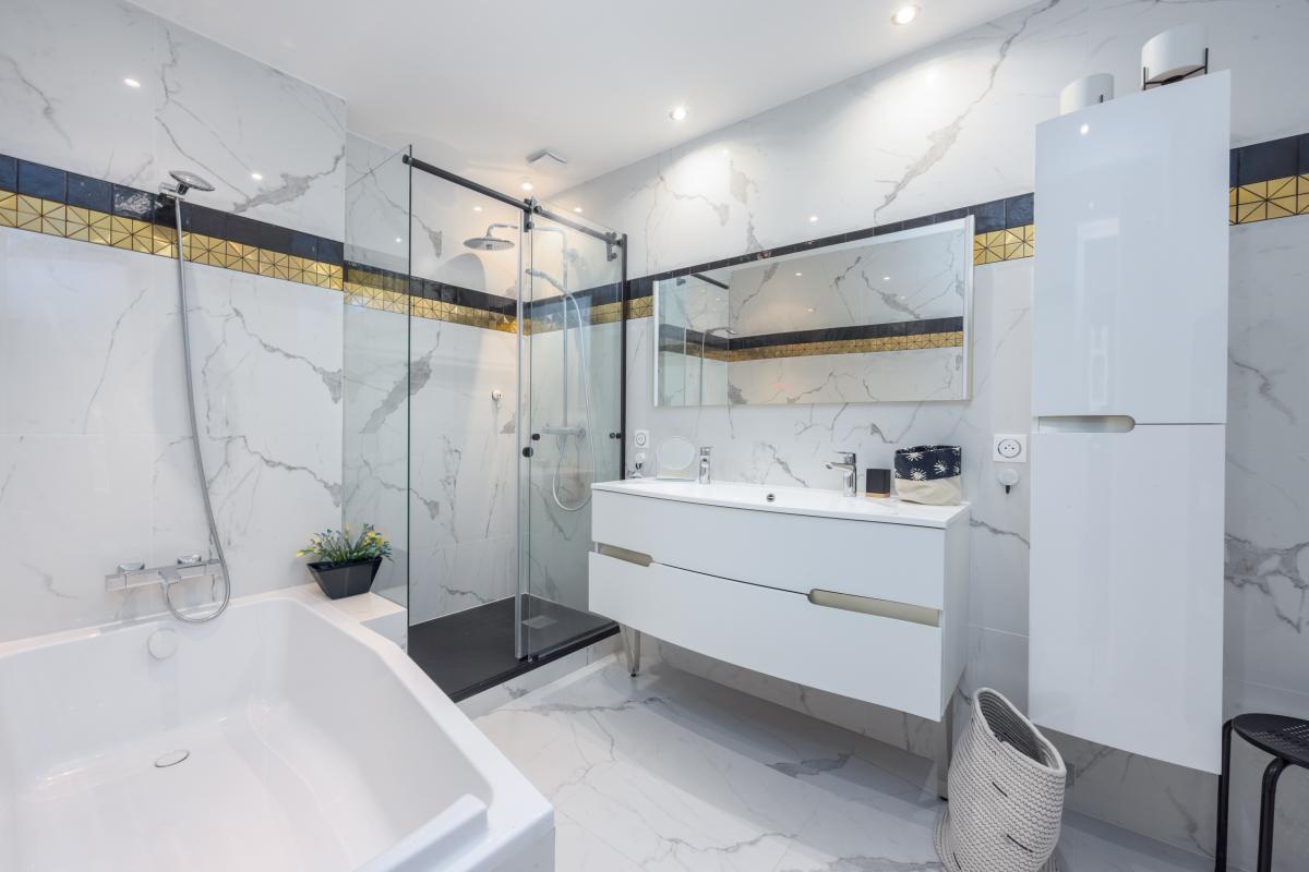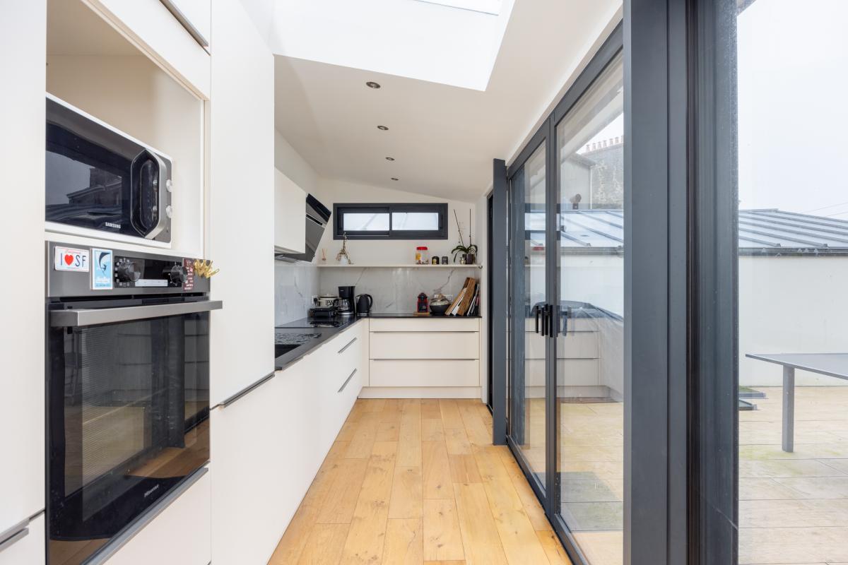 Proximité immédiate de la plage et centre-ville, au calme, maison d'habitation très lumineuse, rénovée intégralement en 2022, composée au rez-de-chaussée d'un studio indépendant d'une buanderie et d'un vaste garage. Au premier étage : salon/salle à manger et cuisine donnant sur une grande terrasse ensoleillée, deux chambres, salle de bain avec douche, WC séparé. Au deuxième étage : trois chambres, salle d'eau, WC.