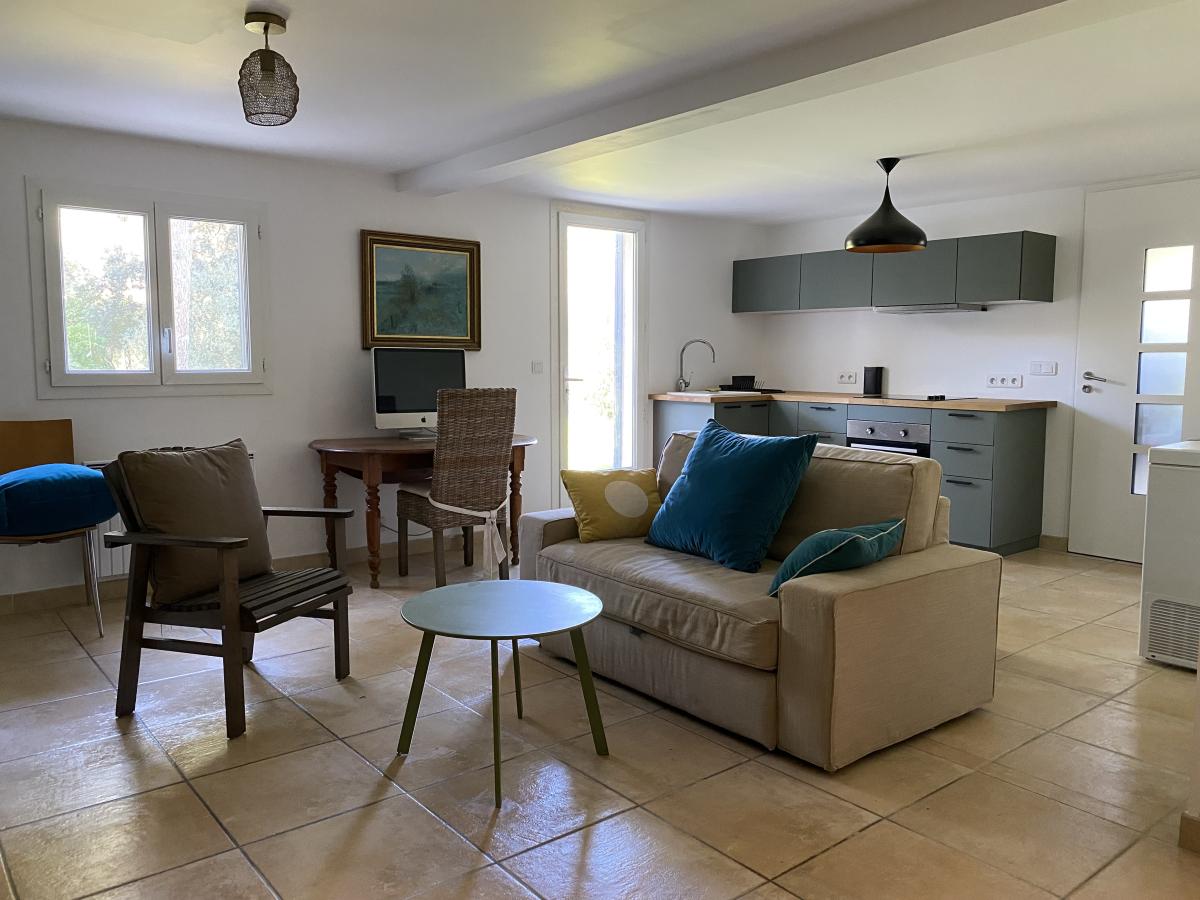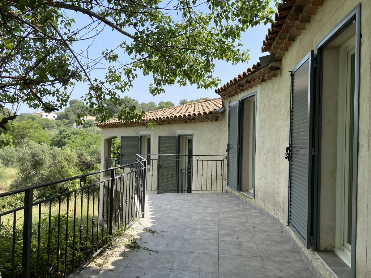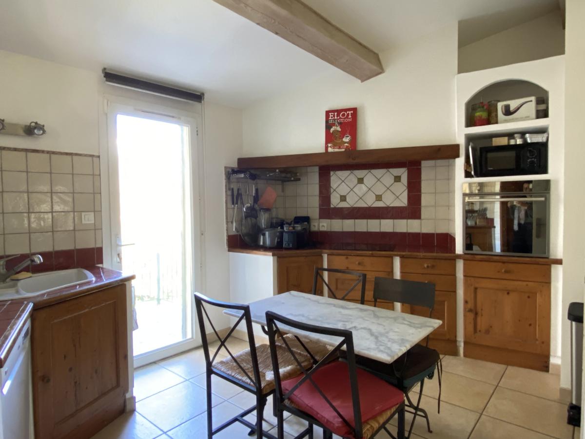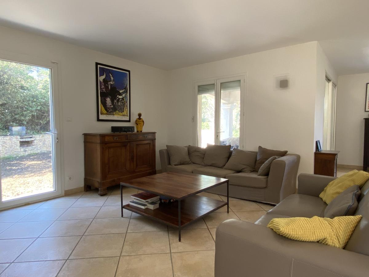 Nîmes collines route d'Uzès : Villa de 190 m² environ, composée d'un séjour de 50 m² avec poêle à bois, une cuisine semi-ouverte, 4 chambres (dont une suite avec sa salle d'eau), une salle de bains, 2 WC indépendants ainsi qu'un appartement T2 comprenant séjour avec cuisine équipée neuve, une chambre, une salle d'eau avec WC, avec entrée indépendante en rez-de-jardin et communiquant avec la maison. Le tout sur 3000 m² de terrain clos avec piscine (chauffée) 9*4.5m, terrasses, arrosage automatique, abri voiture, et pompe à chaleur avec système rafraîchissant par le sol.