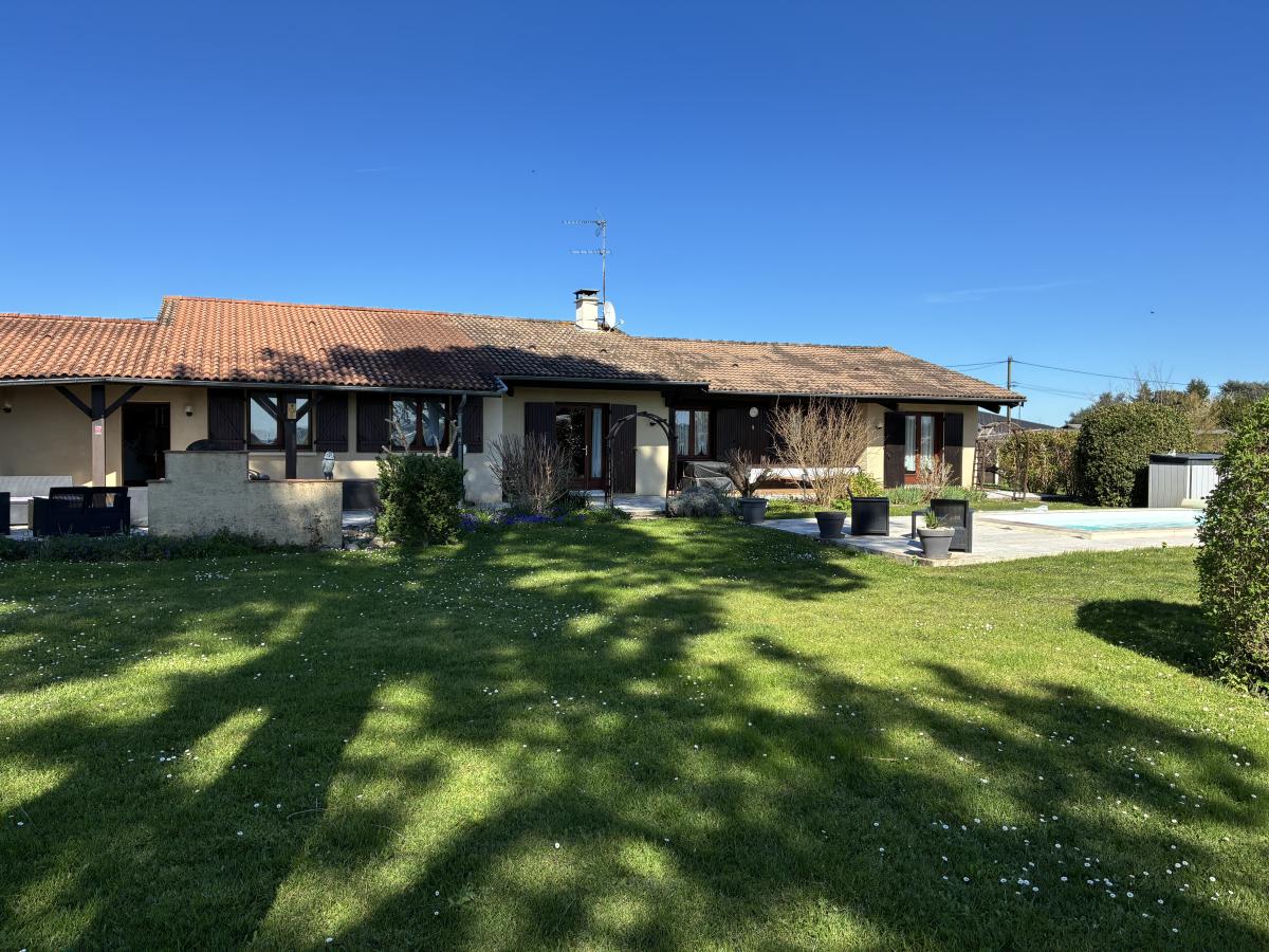 Traditionnelle au calme dans la campagne Sud-Gironde, entièrement de plain pied composée d'une entrée ouverte sur un bel espace de vie de 85m² comprenant double salon, coin repas, cuisine, insert.
