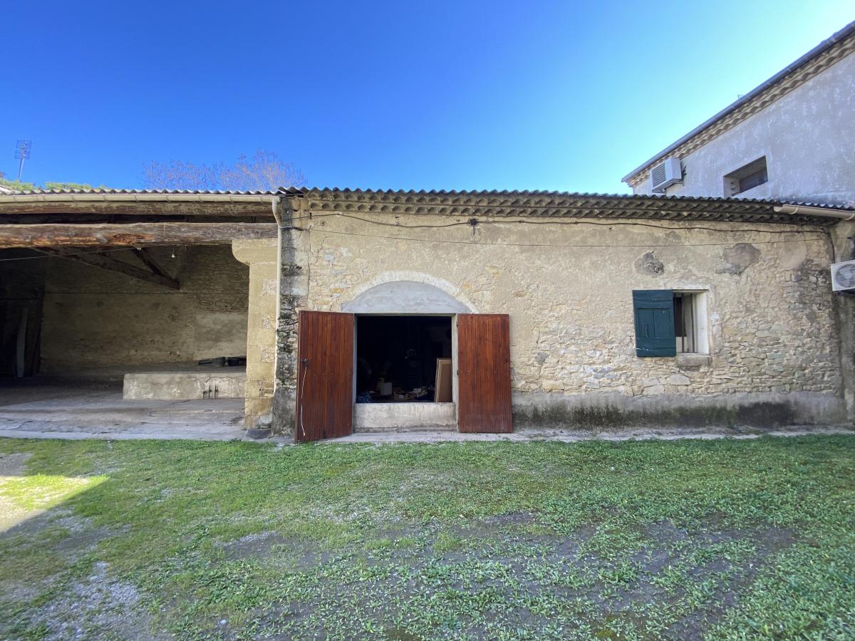 A 15 mn de Nîmes. Au cœur du village, maison en pierres composée de deux appartements libres d'occupation avec jardin et dépendances. Chaque étage dispose d'environ 90 m² environ, le terrain est piscinable (près de 500m²), sur l'arrière de la bâtisse se trouve une remise attenante de 50 m² au sol ainsi qu'une cour, une partie couverte d'environ 130m²,une petite dépendance et un garage. Beaucoup de possibilités d'aménagement, deux entrées possibles. Investisseurs, profession libérale, grande famille...