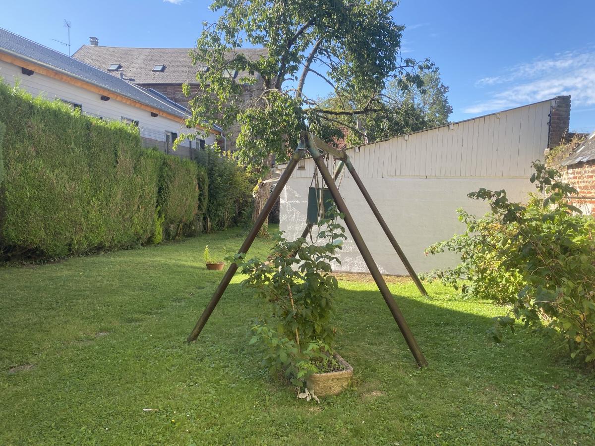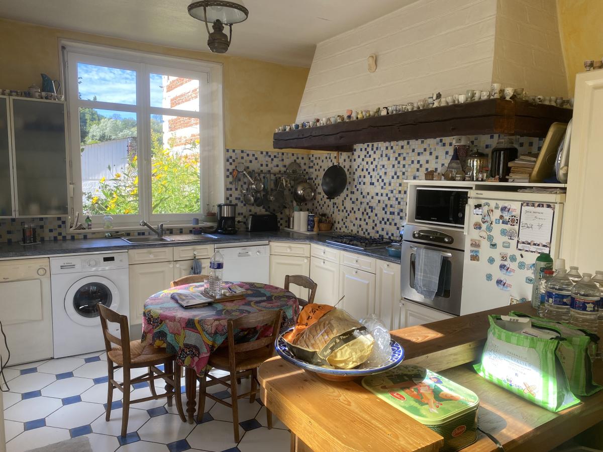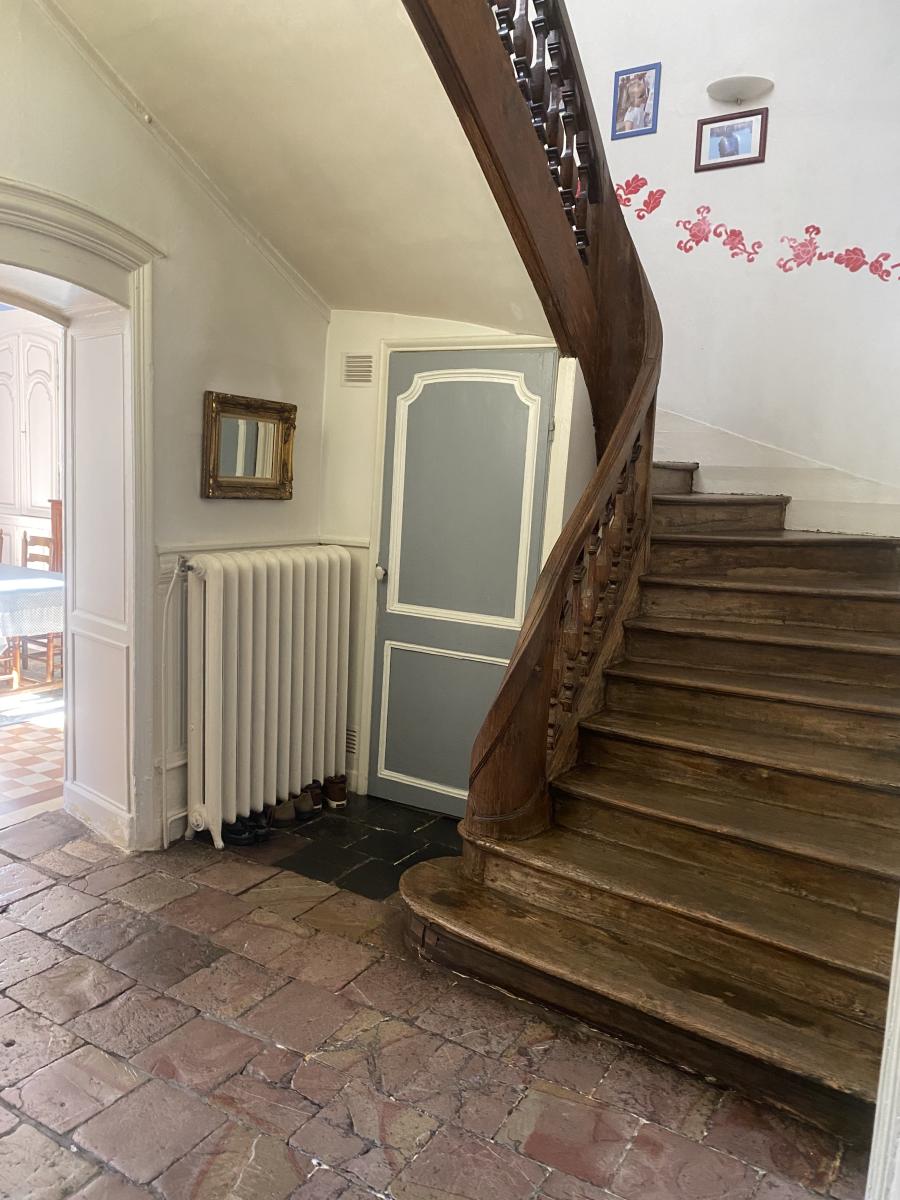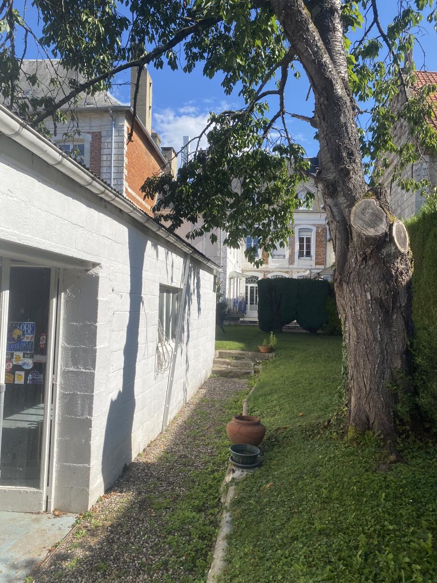 Maison de caractère à DOULLENS centre-ville sur 626m² avec double garage (5 voitures) (200m² hab) entrée, séjour-salon (38m²), séjour (17m²), salle de billard (16m²), cuisine (15m²) et WC. Etage : 5 chambres, salle d'eau, salle de bains, WC et grenier au dessus. Chauffage central gaz de ville (chaudière 2024), atelier-dépendance, terrasse, jardin.