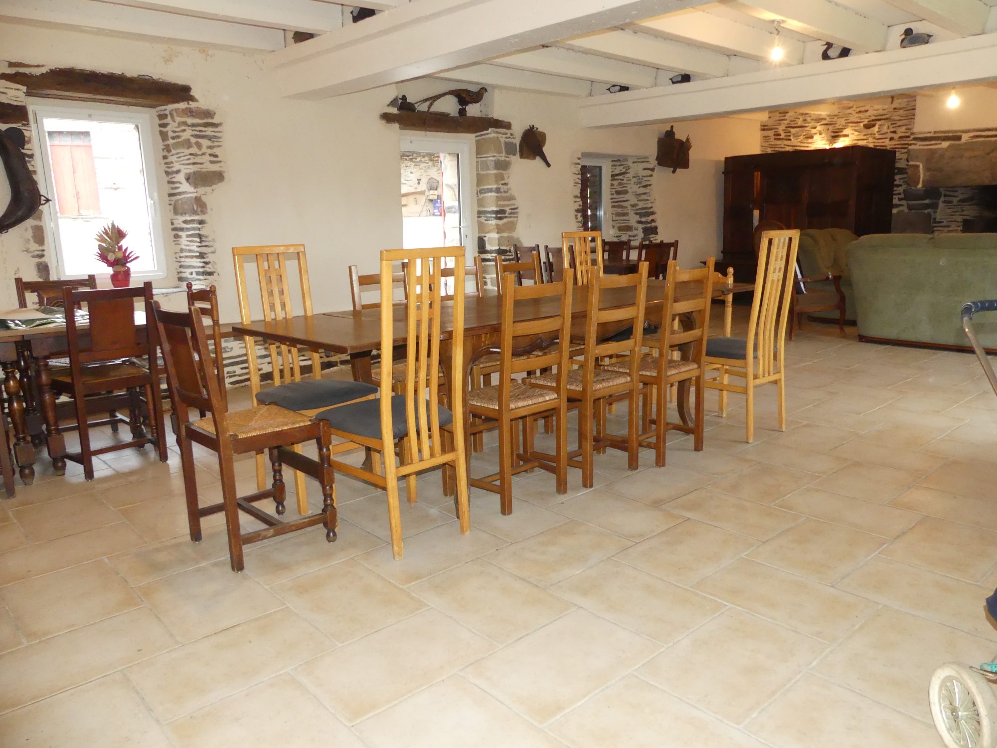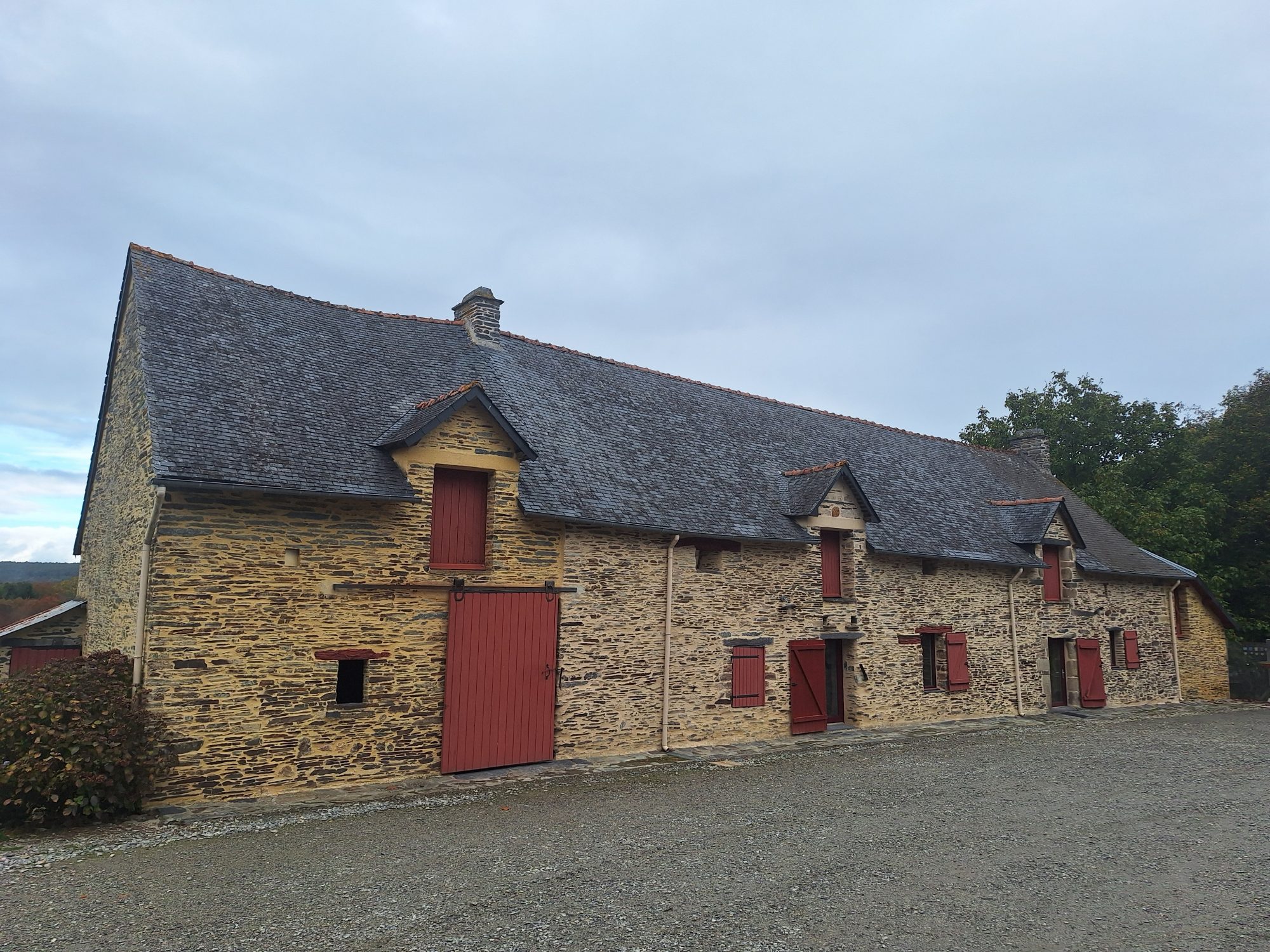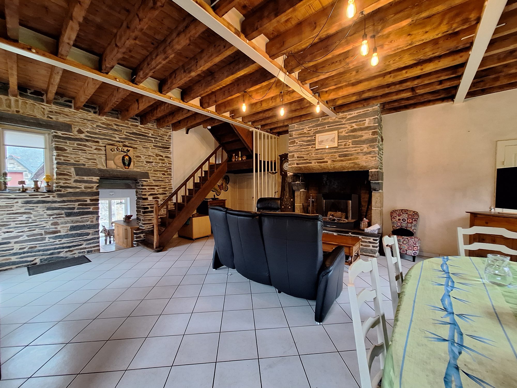- Une longère à usage d’habitation construite en pierres sous ardoises de 204 m² avec une pièce de vie cheminée, cuisine aménagée, cellier, une chambre, salle d’eau, wc avec lavabo, buanderie ; à l’étage, quatre chambres, salle de bains, wc.