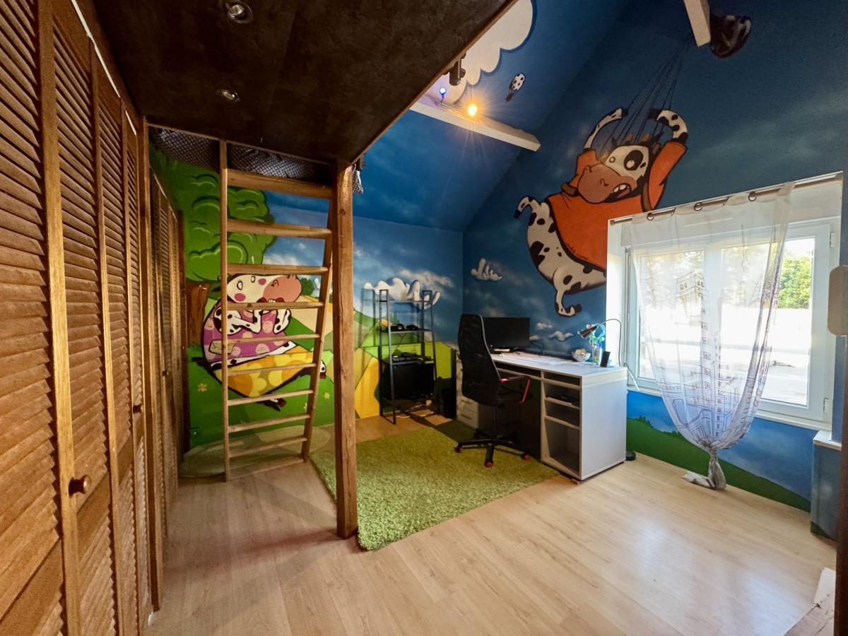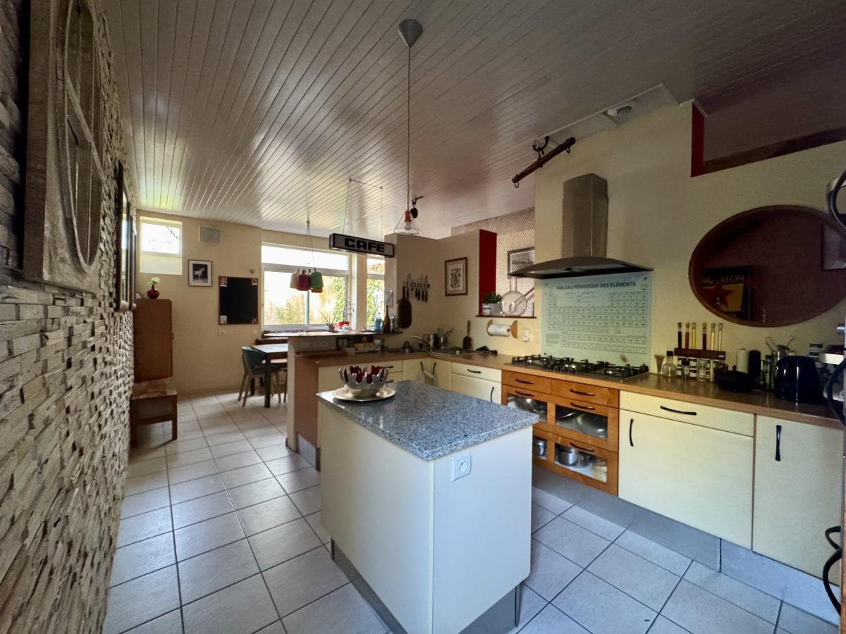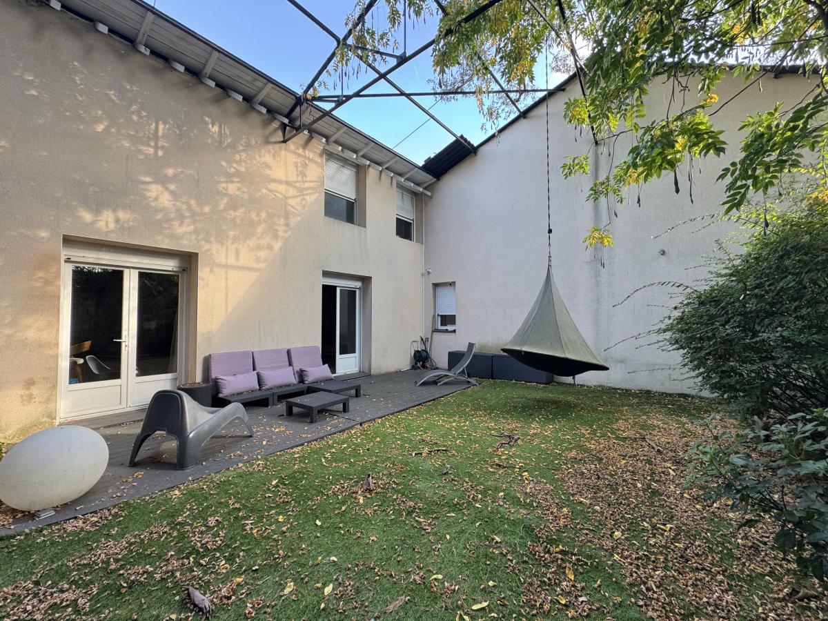 Grâce à sa conception unique, cette maison allie les avantages d’un loft urbain avec l’intimité et l’espace d’une maison. Découvrez au rez-de-chaussée : entrée avec placard, buanderie, cuisine aménagée/ équipée et son arrière cuisine, WC, salle à manger, une pièce à vivre de 50 m² avec cheminée pour une ambiance chaleureuse. A l'étage : 4 chambres toutes aménagées de rangements, dont une suite parentale avec dressing et salle d'eau pour un confort optimal, WC séparé et salle de bains. Un garage et un atelier d'environ 150 m² complètent ce bien, pour un usage professionnel, du stockage, ou à transformer en locatif. Une terrasse au sud, un jardin de 80 m² à l'ouest et un jardin de 145 m² à l'est.