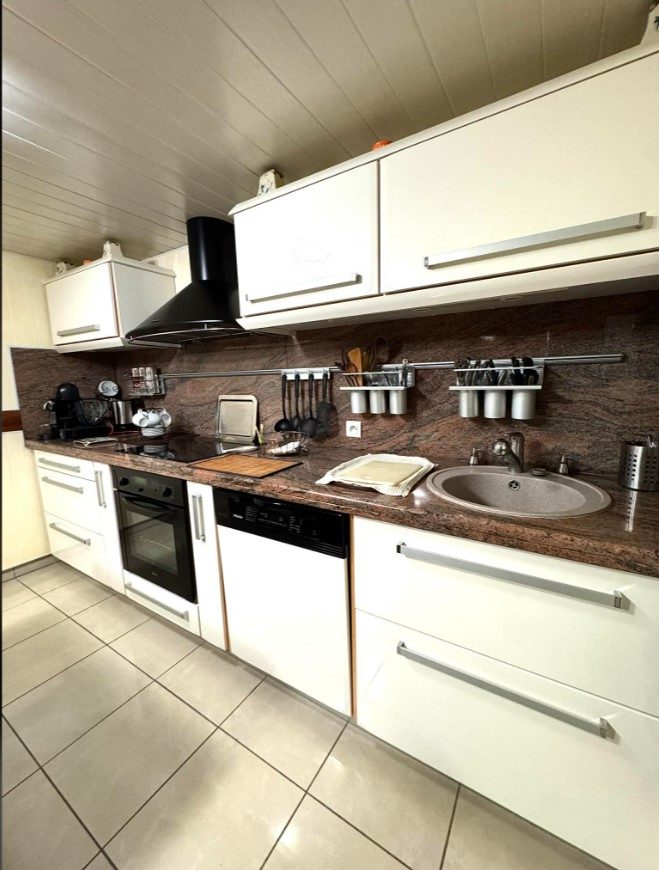 Un sous-sol aménagé comprenant une cuisine équipée, une salle de douches, un WC indépendant, une buanderie, un débarras, un dressing.