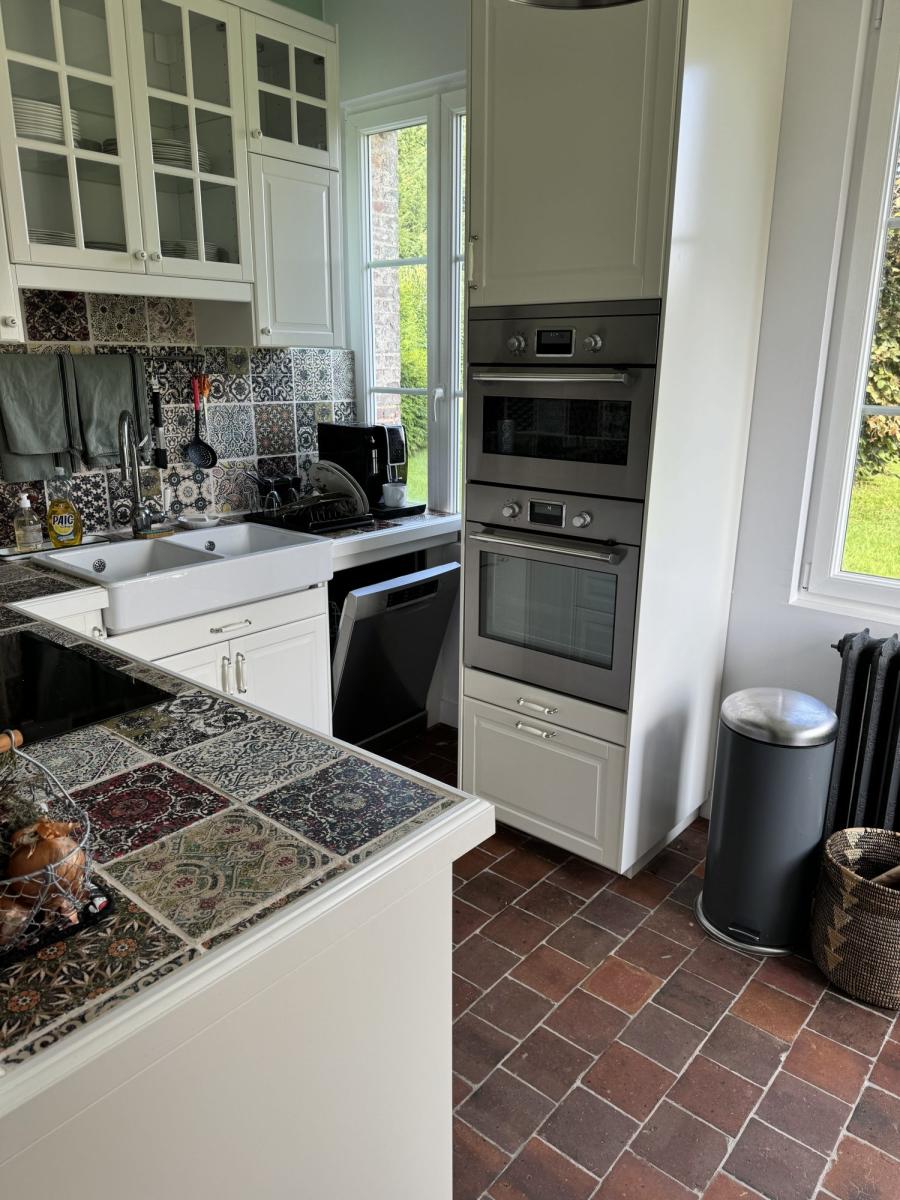 RDC: hall d'entrée, salon avec cheminée, salle à manger, cuisine aménagée, et wc.