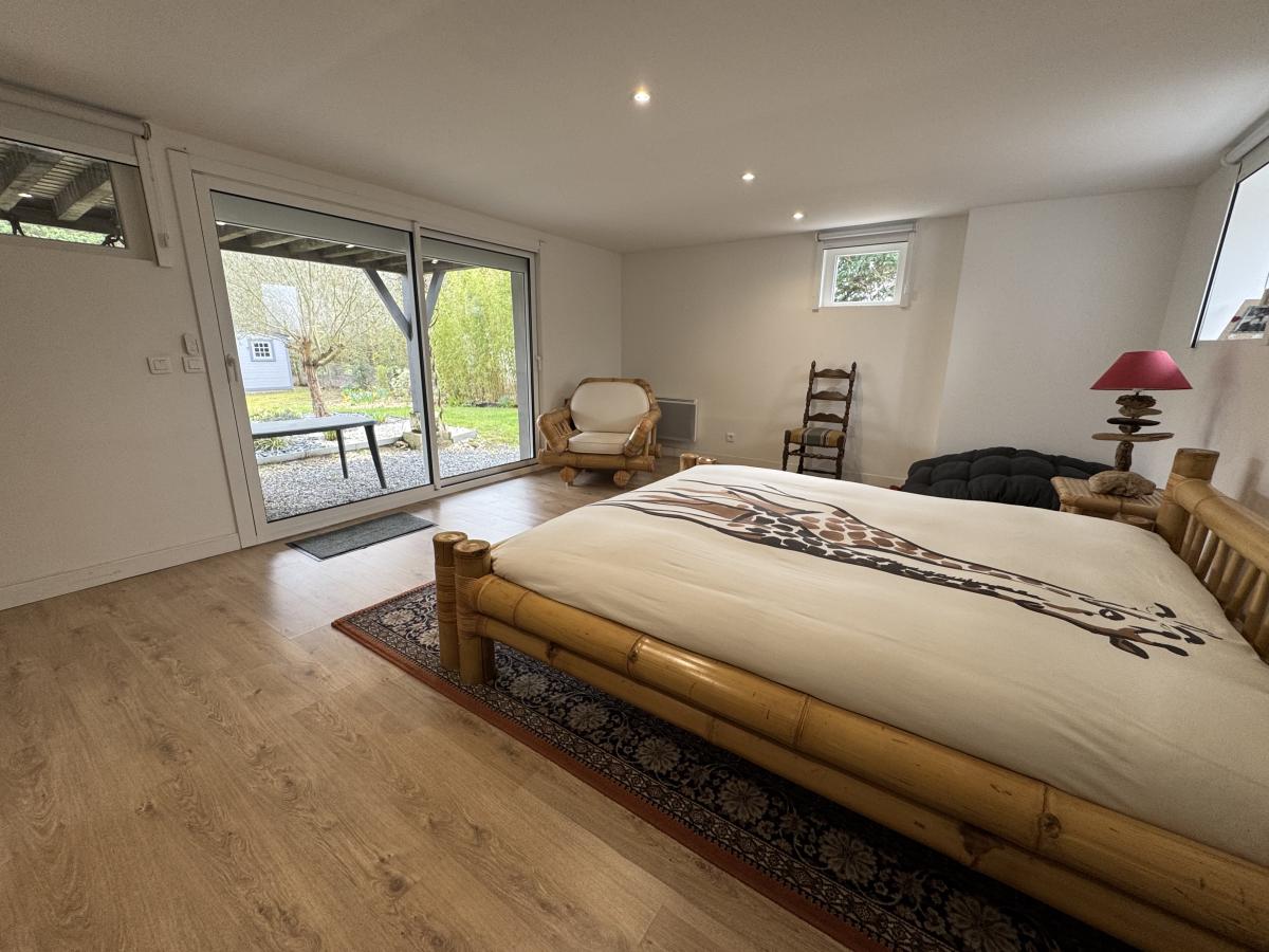 Au rez-de-jardin: entrée, deux pièces de 25 et 30m² (possibilité chambres, wc et buanderie-chaufferie-douche.