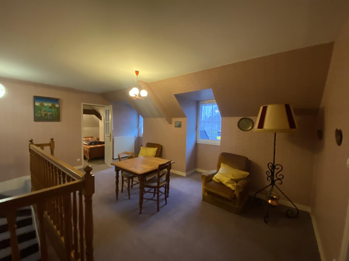 - Au premier étage : une mezzanine offrant deux chambres, une pièce, une salle d’eau, un wc séparé, greniers.