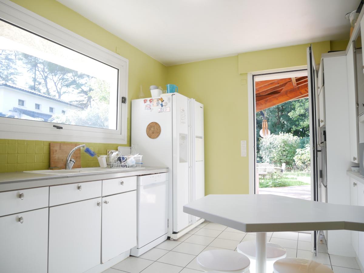 Au calme et sans vis-à-vis, vous apprécierez les vastes volumes de cette lumineuse villa d'architecte des années 2000. Au rez-de-chaussée, la maison offre un vaste séjour avec une cheminée, ouvrant sur sa terrasse ombragée et son jardin, une salle-à-manger attenante à la cuisine équipée, deux chambres et une salle-de-bain. A l'étage la maison dispose de deux chambres et d'une salle d'eau avec wc. Les deux bureaux permettent par ailleurs de vous réserver un espace confortable pour le télétravail. L'un des deux bureaux possède une salle d'attente avec une entrée indépendante permettant ainsi d'exercer une profession libérale et de recevoir votre clientèle avec la possibilité de se garer.