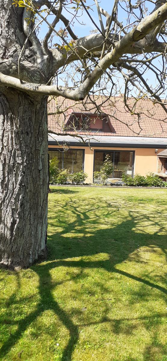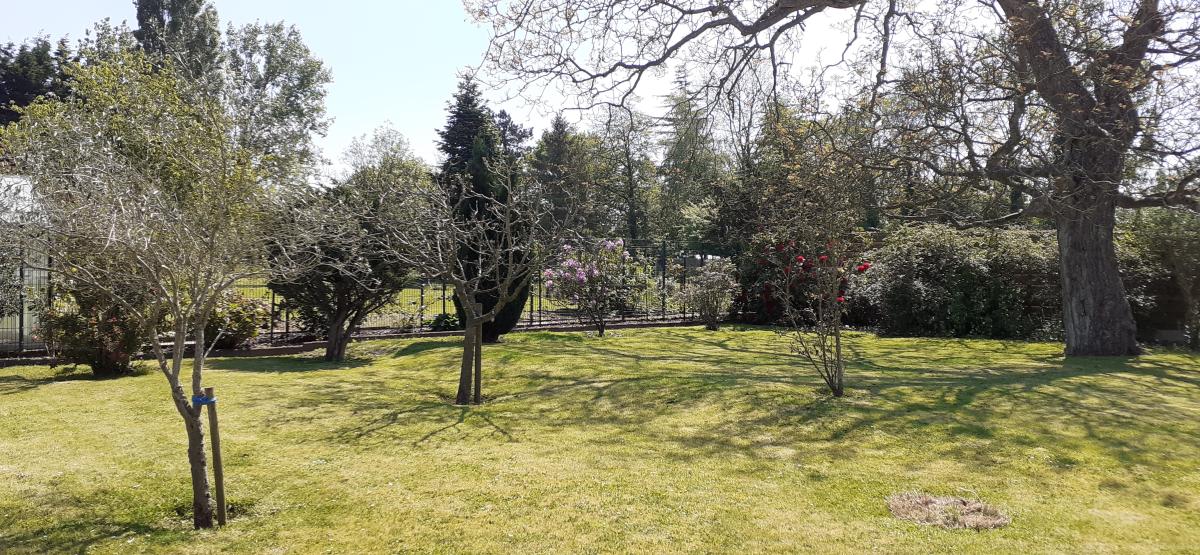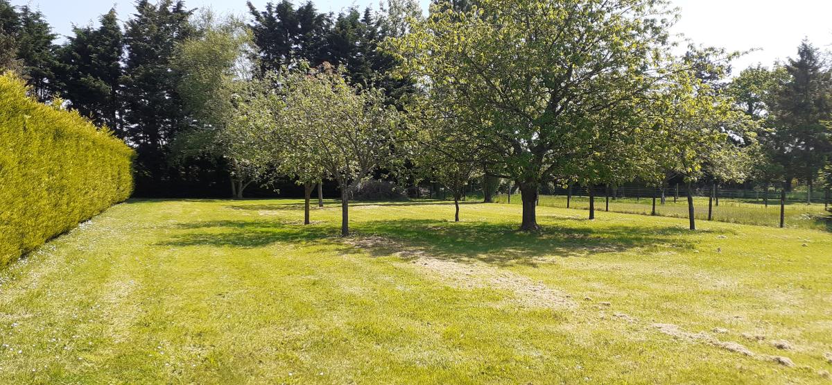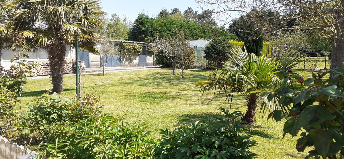 Une terrasse avec grand barbecue donnant sur un magnifique extérieur de 2500m² bien entretenu.