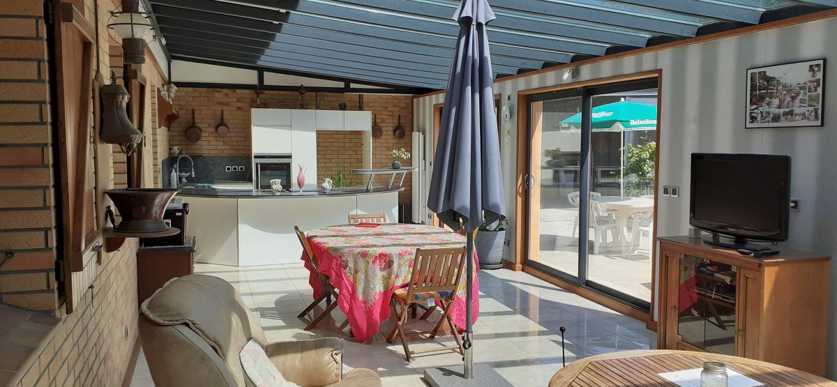 Vous y trouverez un second espace de vie comprenant une superbe véranda idéale pour les beaux jours de 67 m², équipée d'une cuisine aménagée et équipée, un séjour, un jacuzzi enterré et ses jets, une salle d'eau et une laverie.