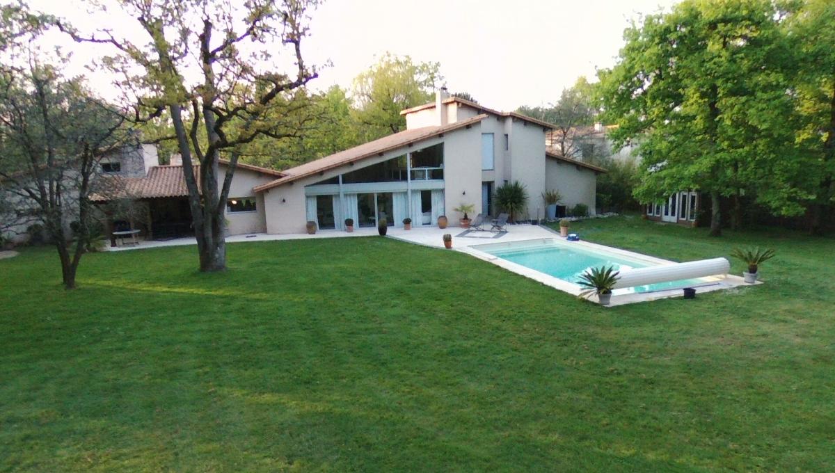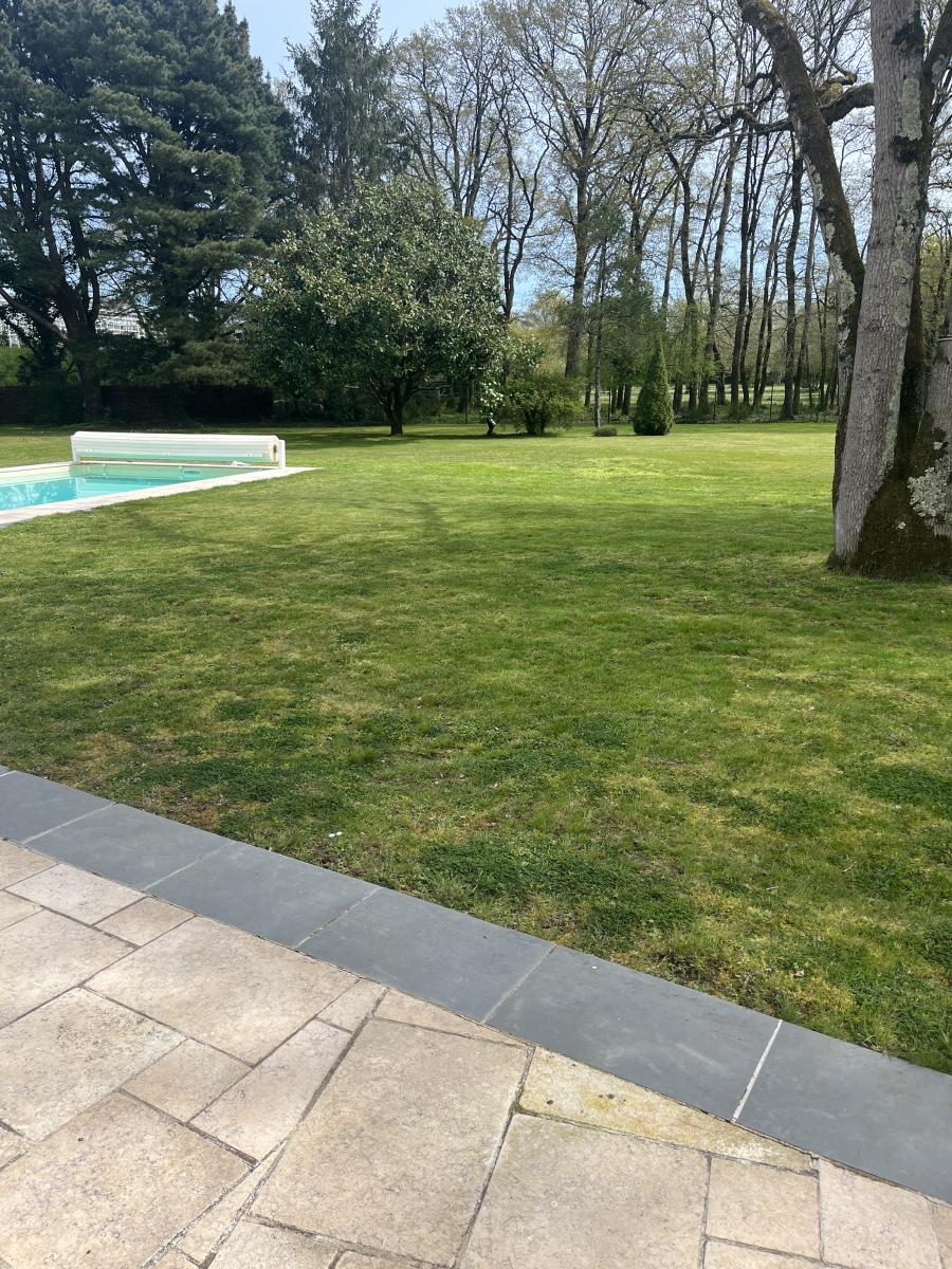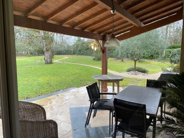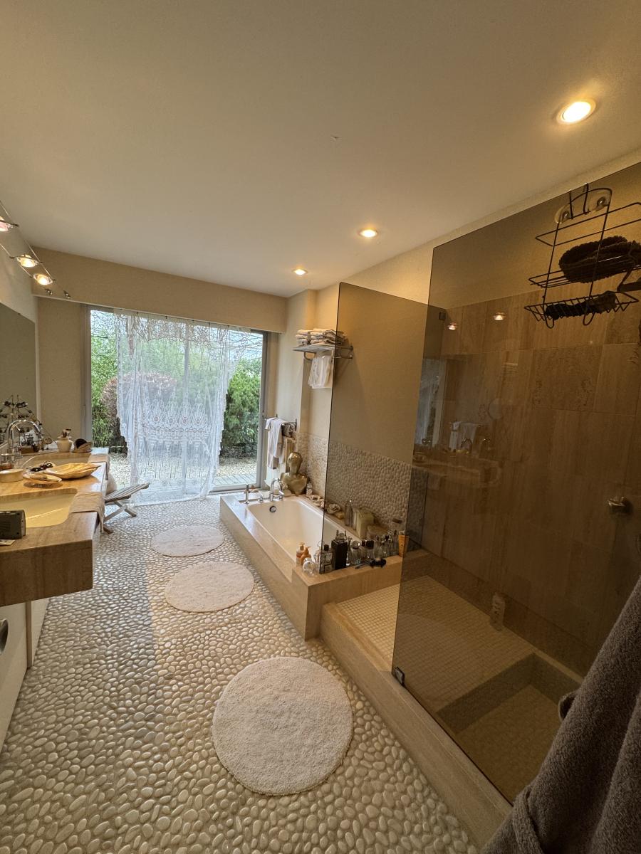 Les larges baies vitrées s’ouvrent sur un magnifique terrain paysagé de 5 000 m², exposé plein sud, sans vis-à-vis, et agrémenté d’une piscine chauffée, offrant un cadre de vie exceptionnel.